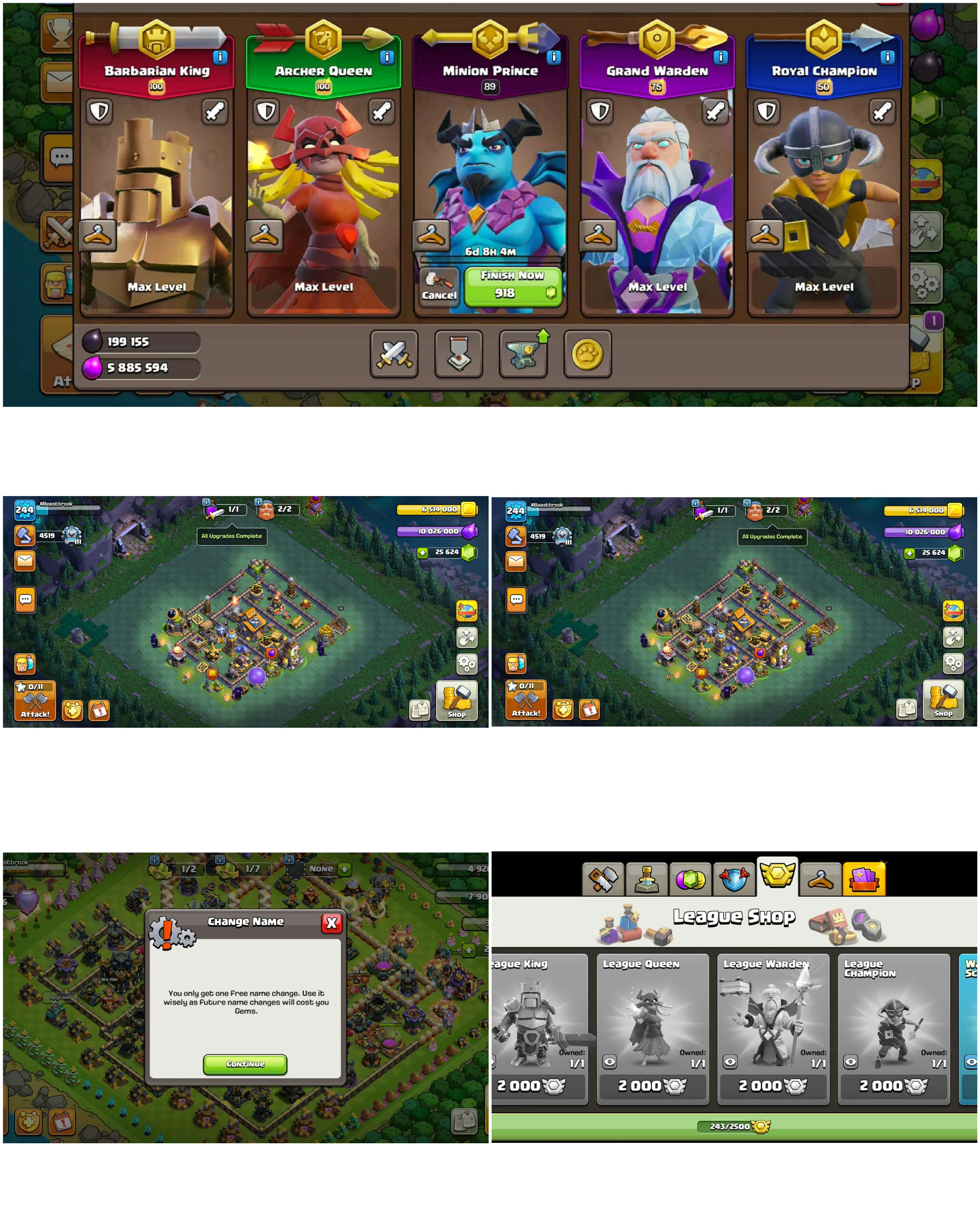 25801 Gems⇨【4 Leauge Skin】⇨Th17 Max 100%⇨Hero_5 Max⇨Epic 11/11 Max⇨Base Max 100%⇨Night Base Max⇨CN Free⇨Full Ownership (#KF)