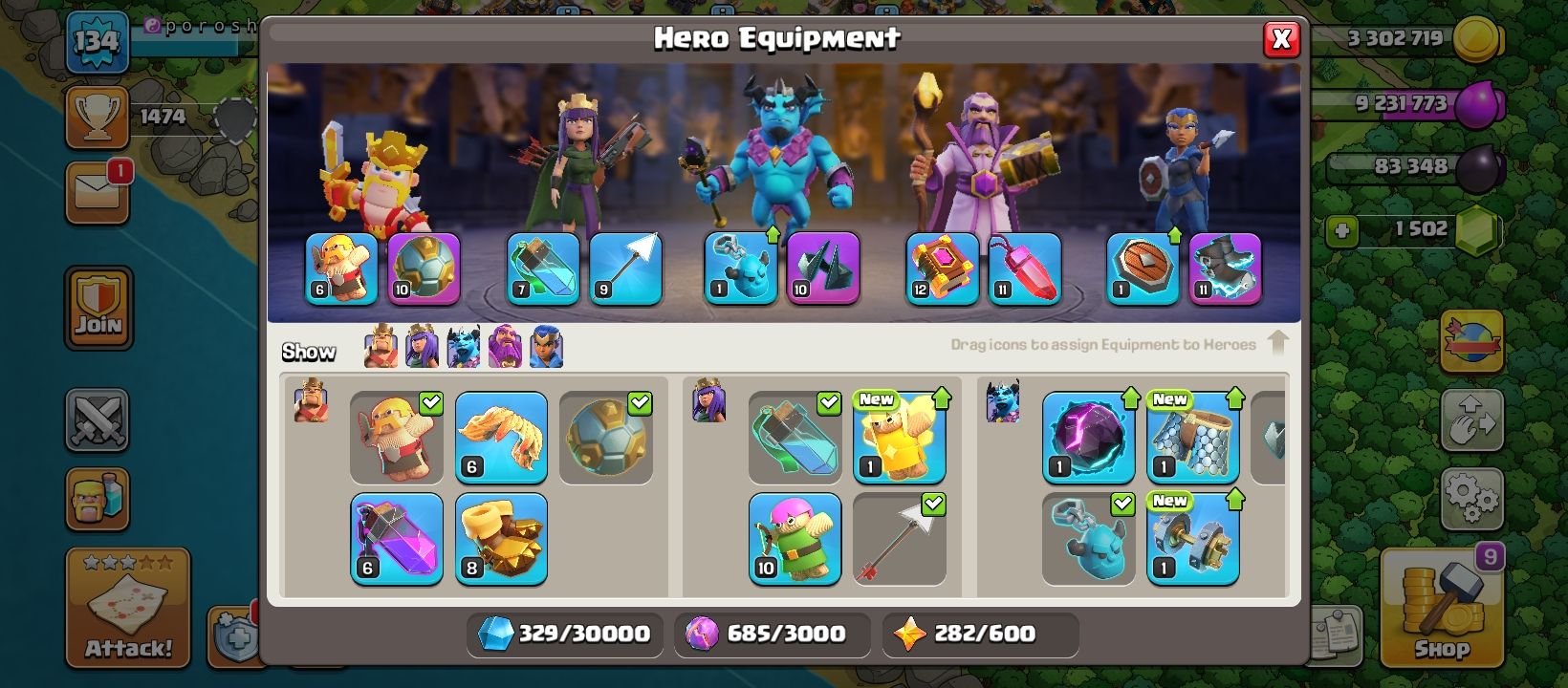 3X EQUIPMENT AND 1500 GAMES !! TH14 SAME MAX !! XP134 !! HEROS 50-54-31-29-6 !! MANY MAGIC ITEMS AND NC 1500