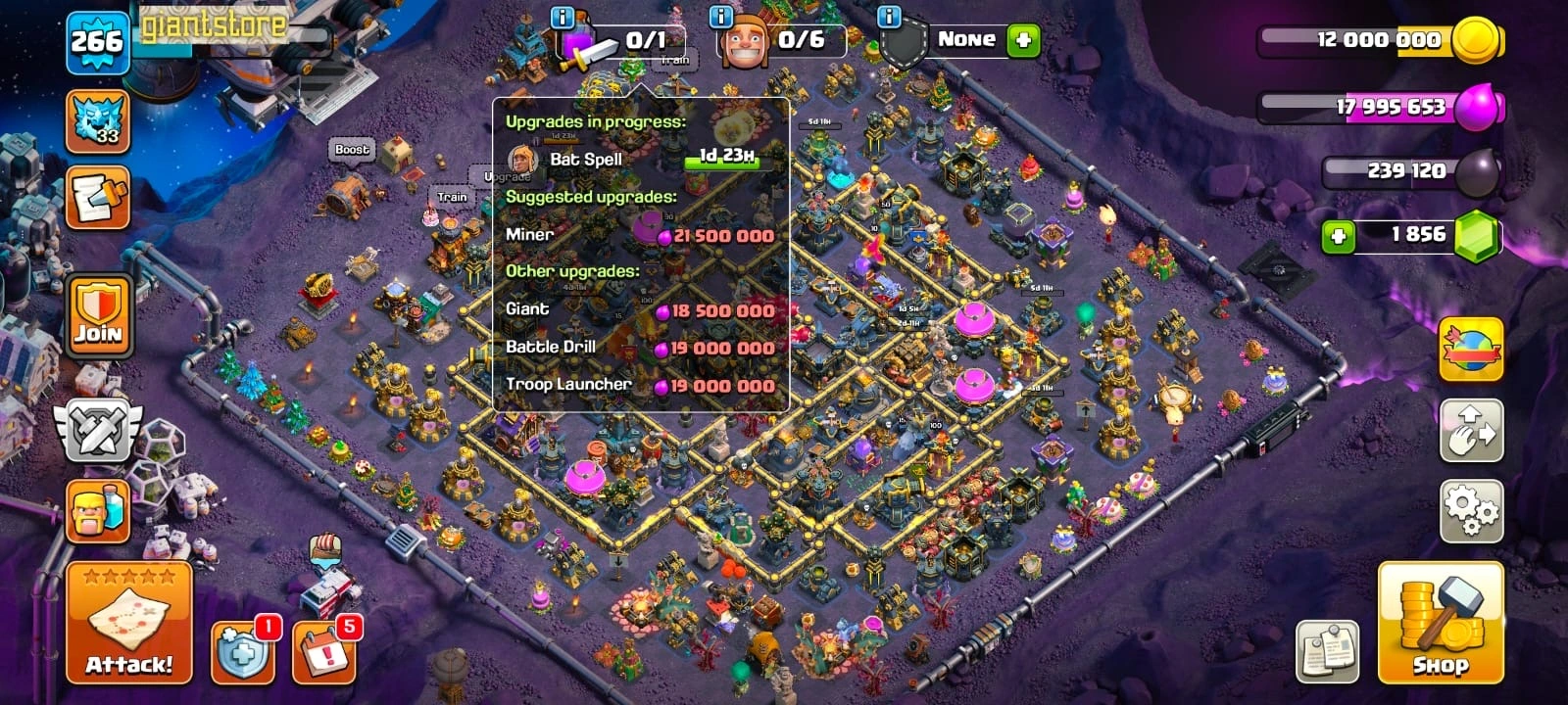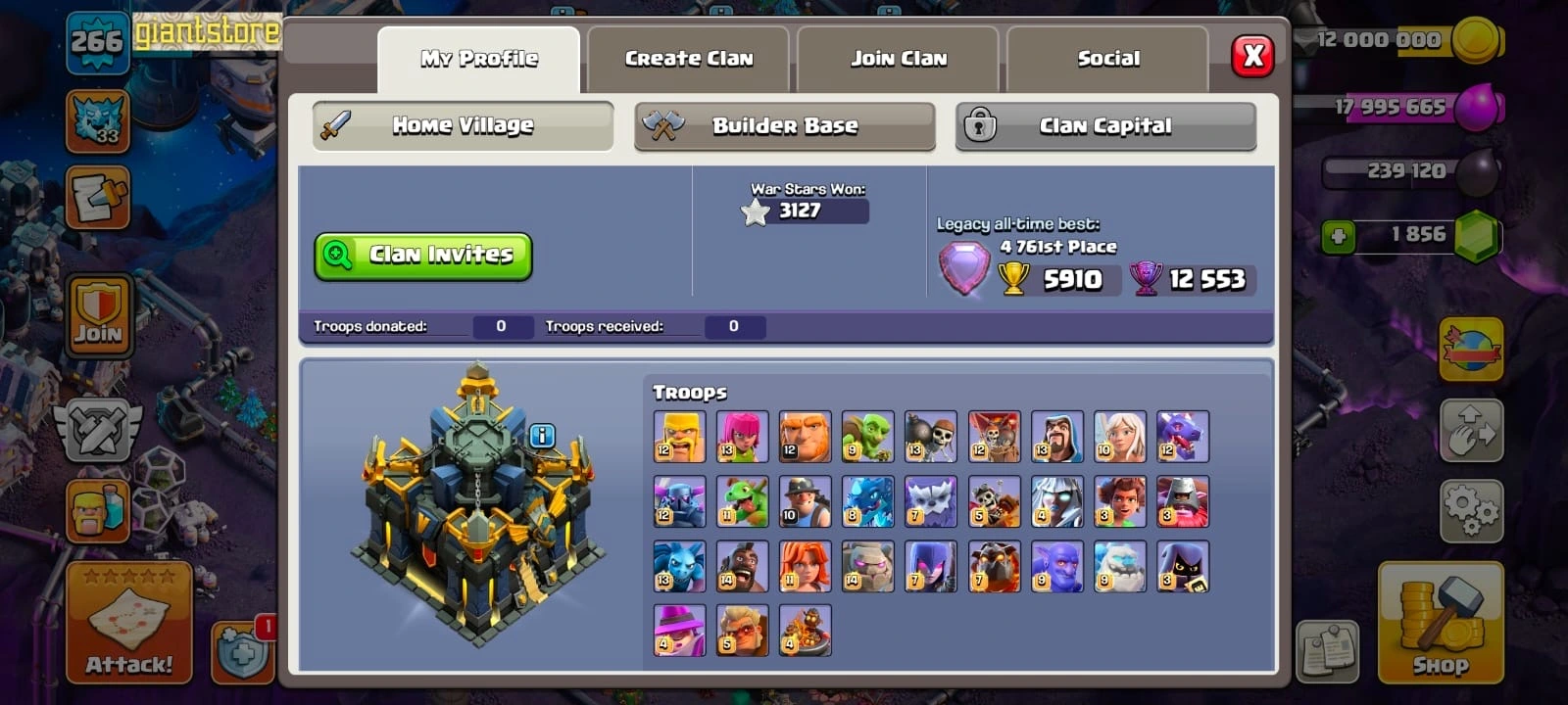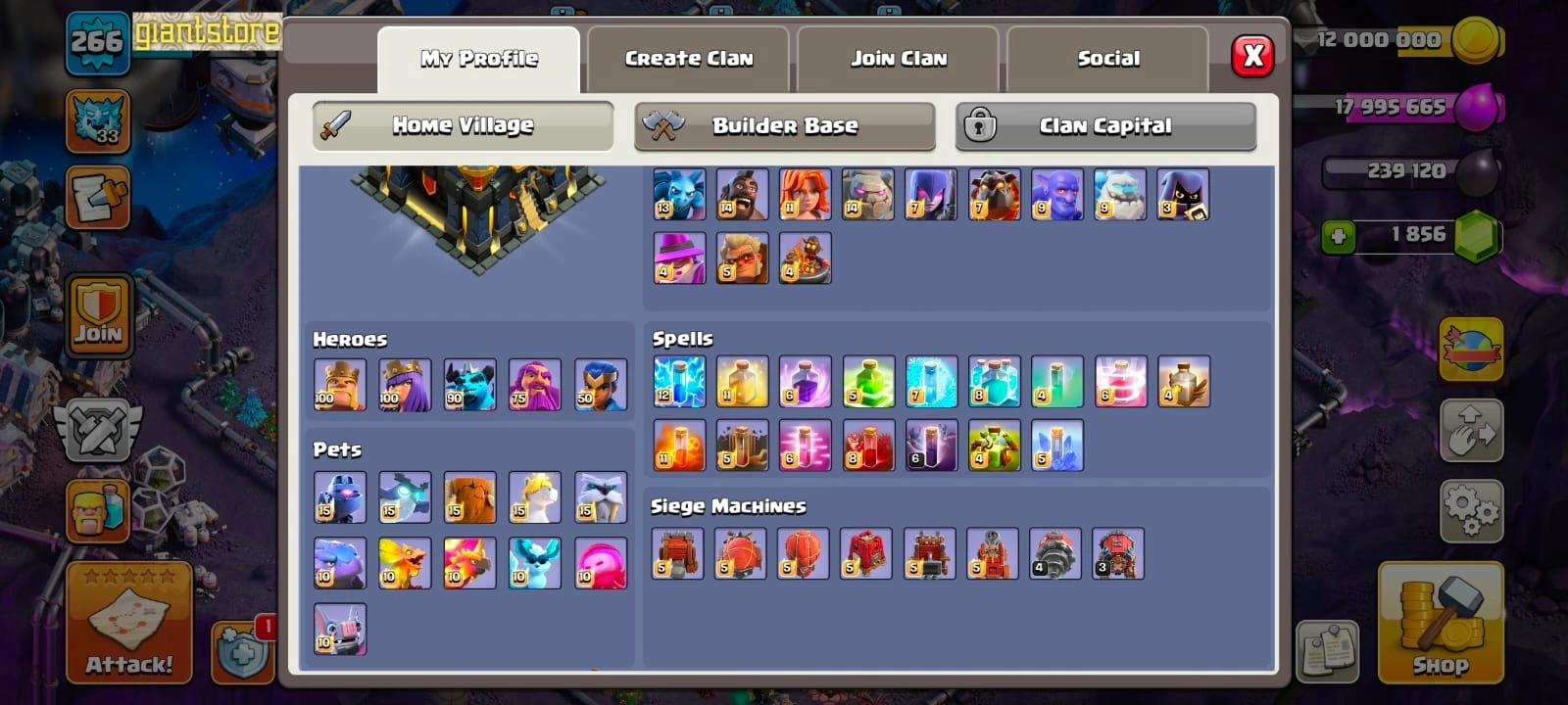 Best deal🔥TH 17 98% MAX🔥max heroes🔥max troops🔥max pets☠️3 max epic equipment⚒️max builder base⚡️all supercharge defense⭐️1000 cwl medal✅cn on