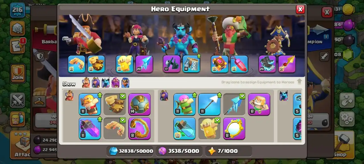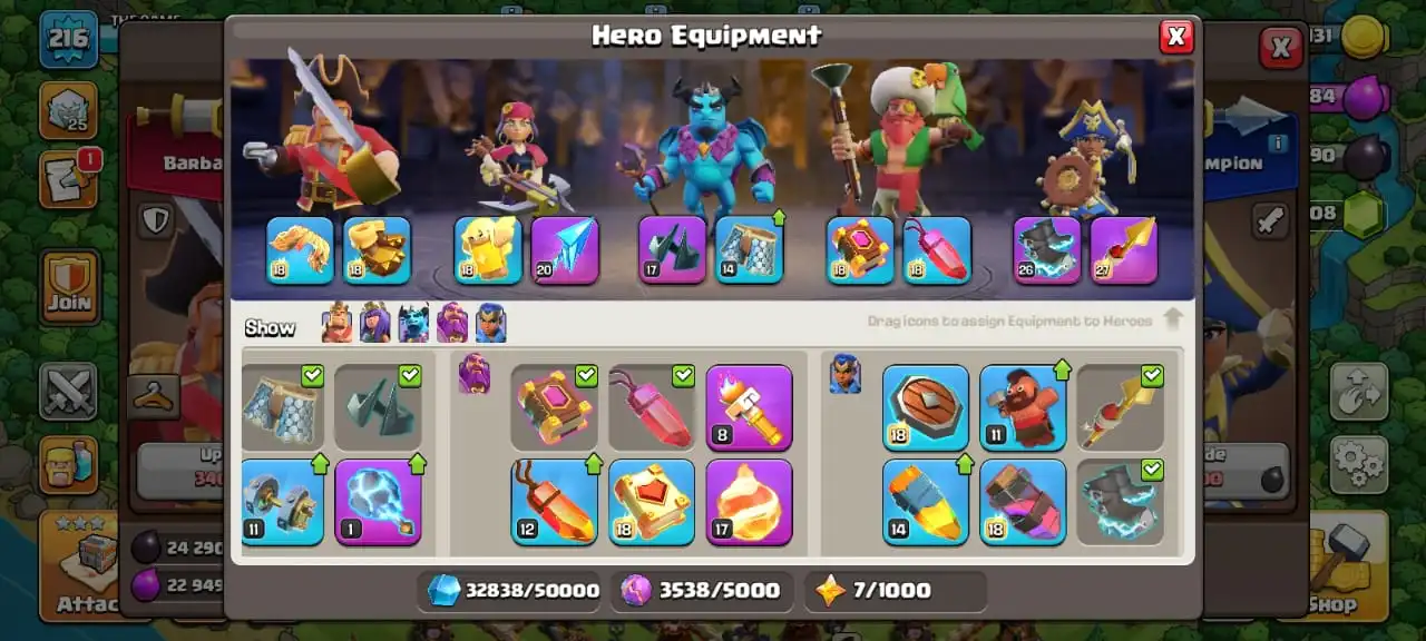 Best deal🔥TH 17 ex th 16 max🔥high heroes level 95/95/70/70/45☠️11 epic equipment⚒️6 builder’d⭐️1129 cwl medal💎7K gems✅6 heroes skin