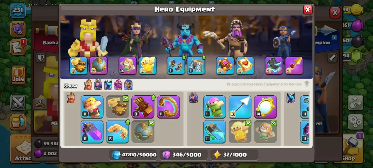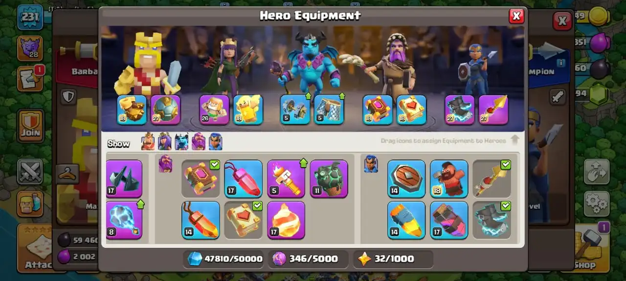 Big sale🔥TH 17 almost max🔥max heroes level 100/100/68/75/50☠️3 max epic equipment⚒️6 builder’s✅ cn on✅5 heroes skin