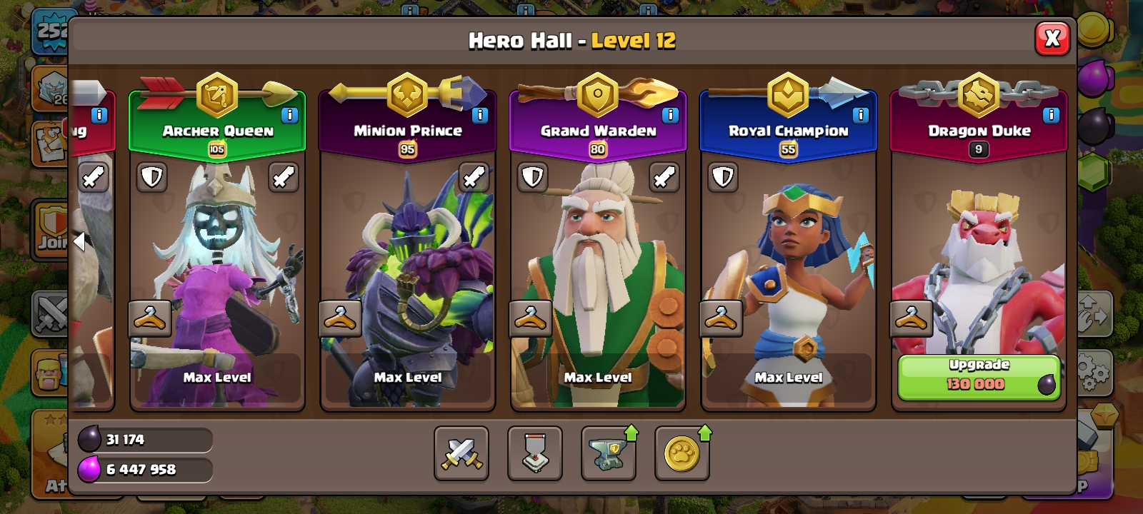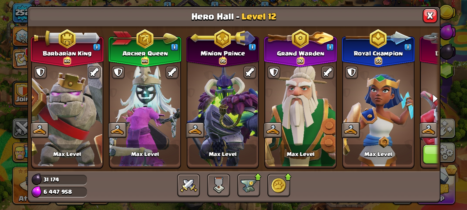Big sale🔥TH 18 almost max🔥max heroes☠️5 max epic equipment⚒️2 max helper⚒️max builder base✅painter scenery and 37 heroes skin