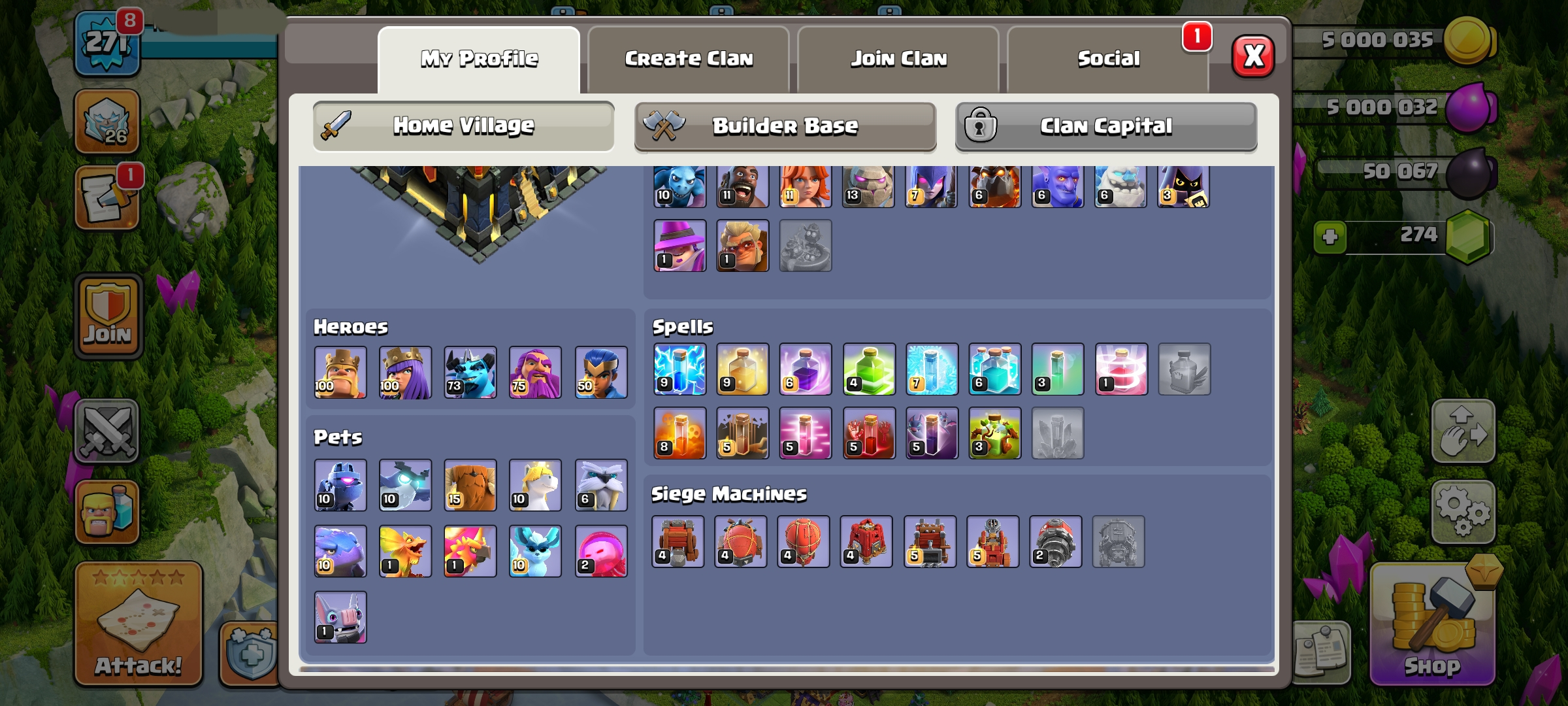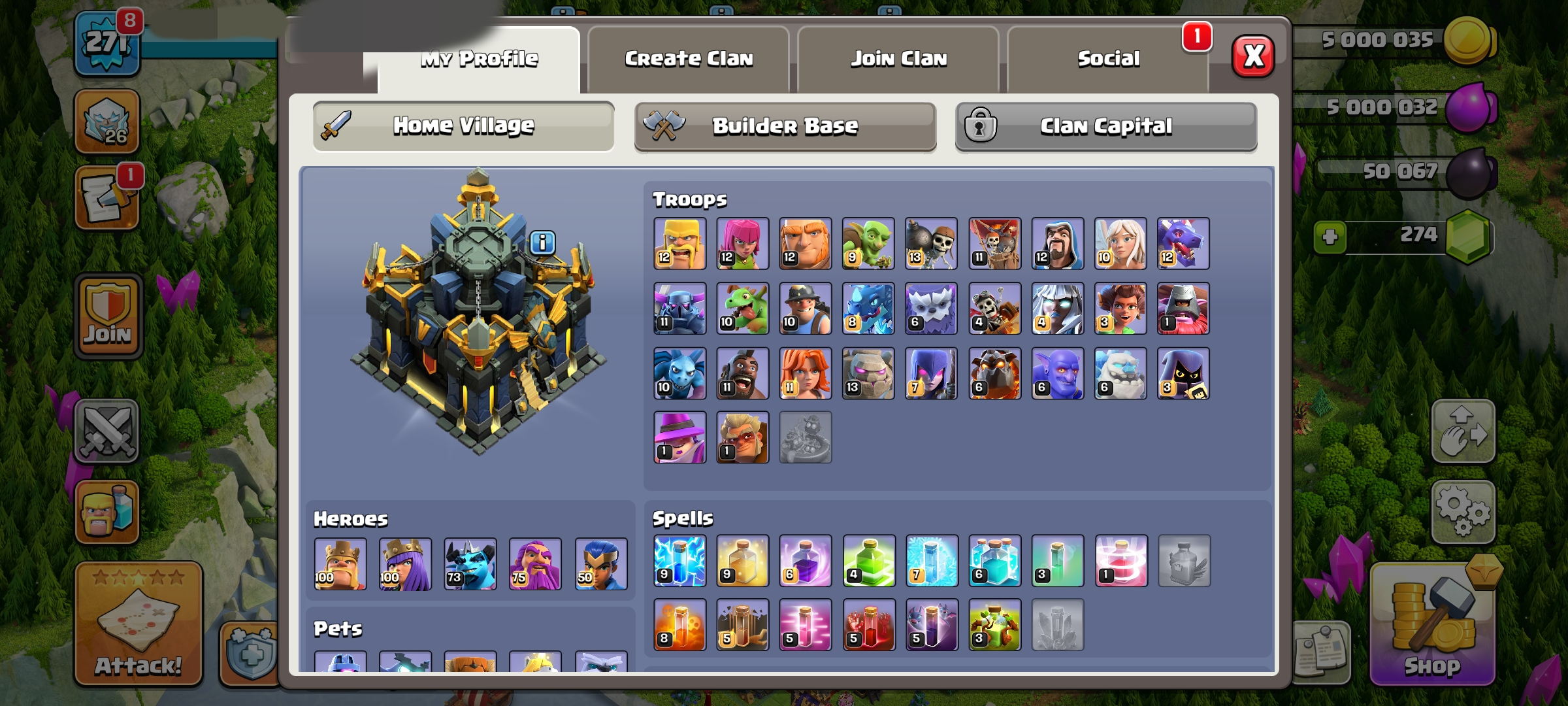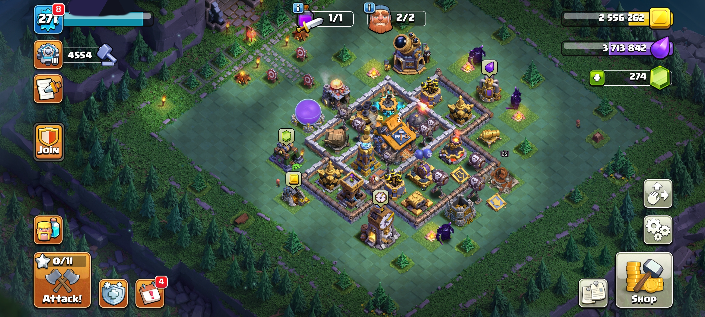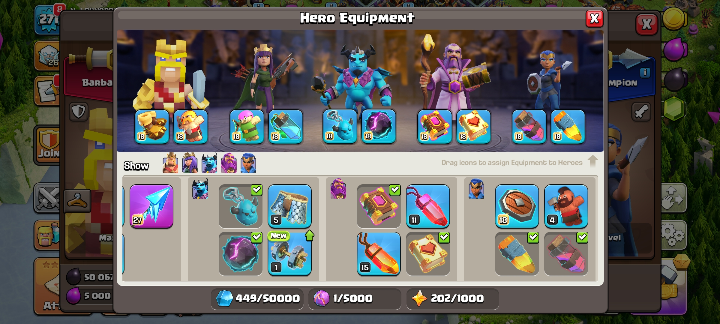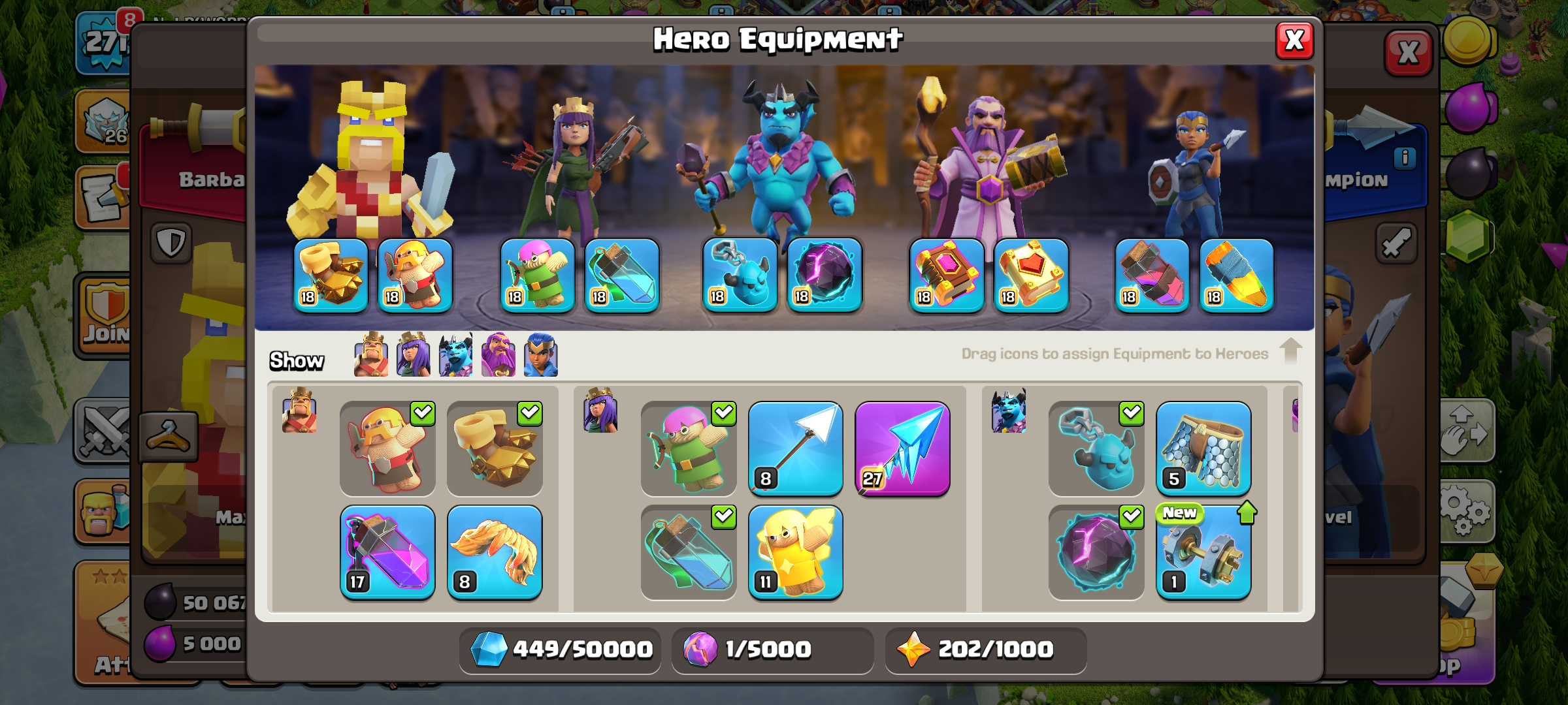 CC-13 TH17 Max/LV 271 [ Skill Epic Max 1 / Common Max 11 ] Heroes 100/100/71/75/50 | 4 Maxed Heroes | Good Walls | 2 Skins Scena