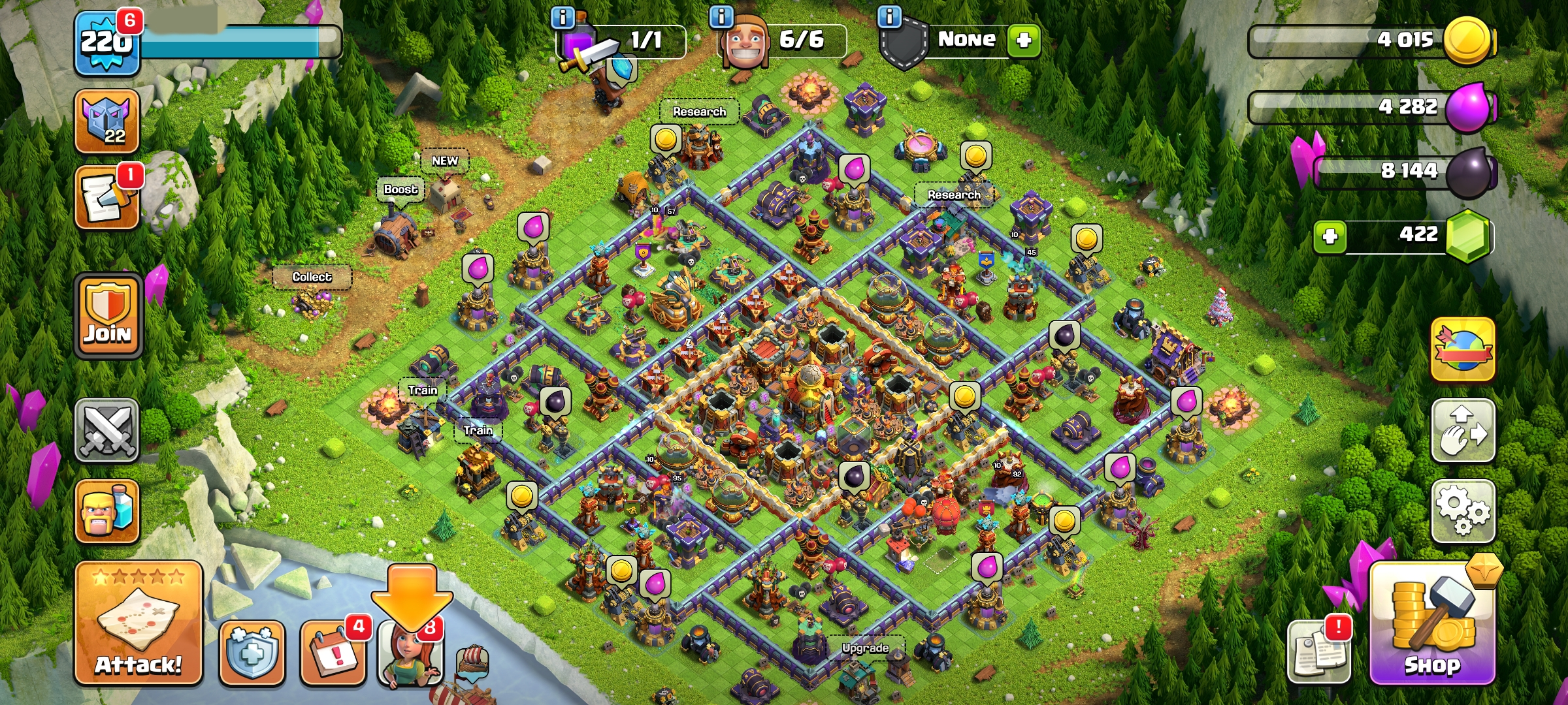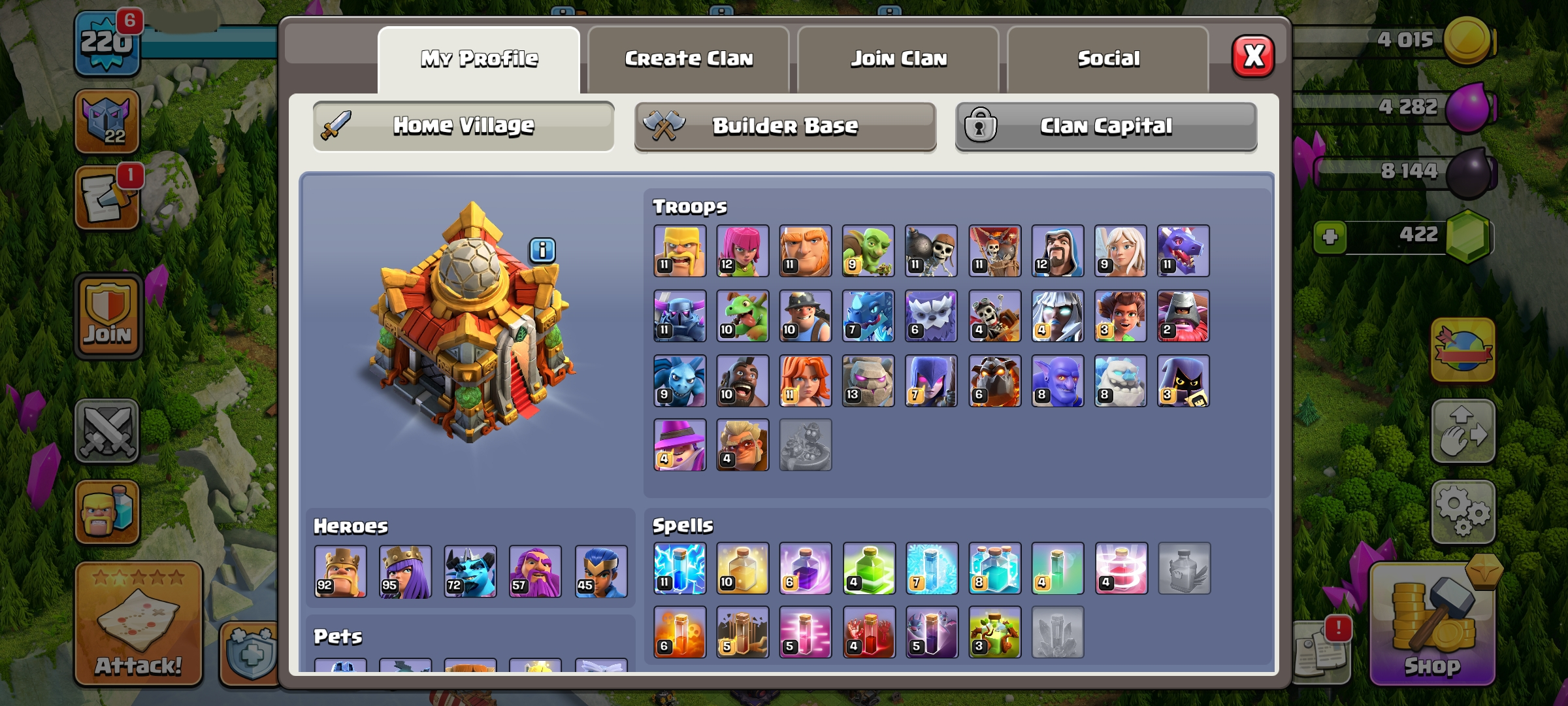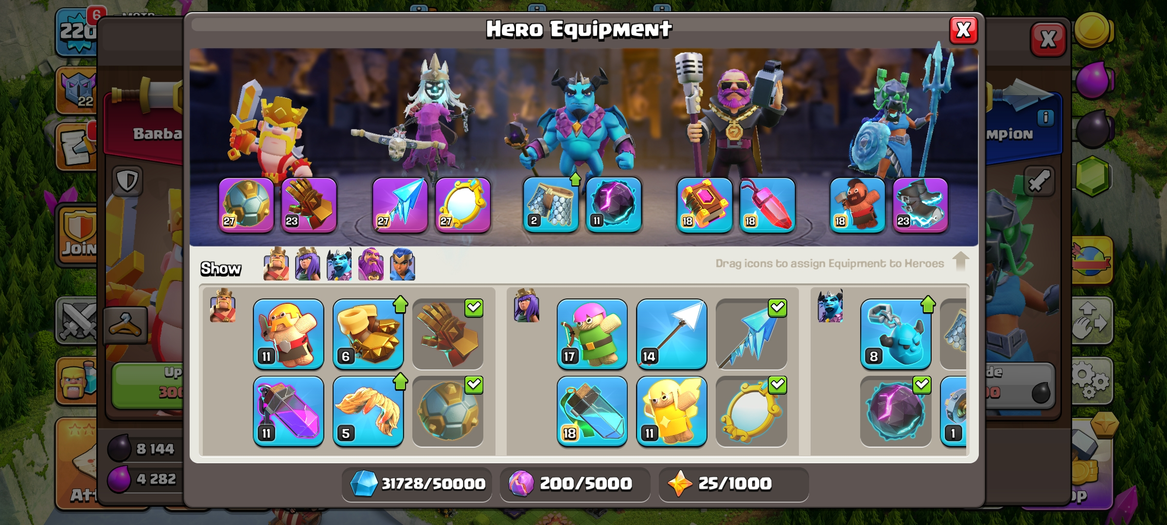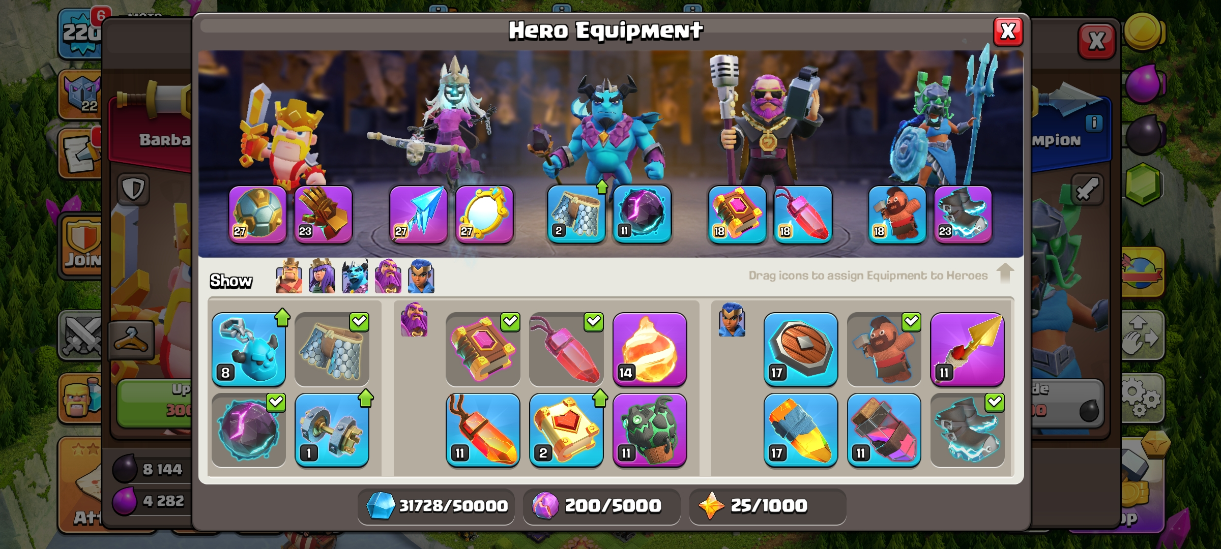 CC-18 TH16/LV 220 [ 8 Skill Epic / Max 3 ] Heroes 93/95/71/56/45 | 2 Maxed Heroes | 5 Hero Skins | Good Deffense, Walls & Troops