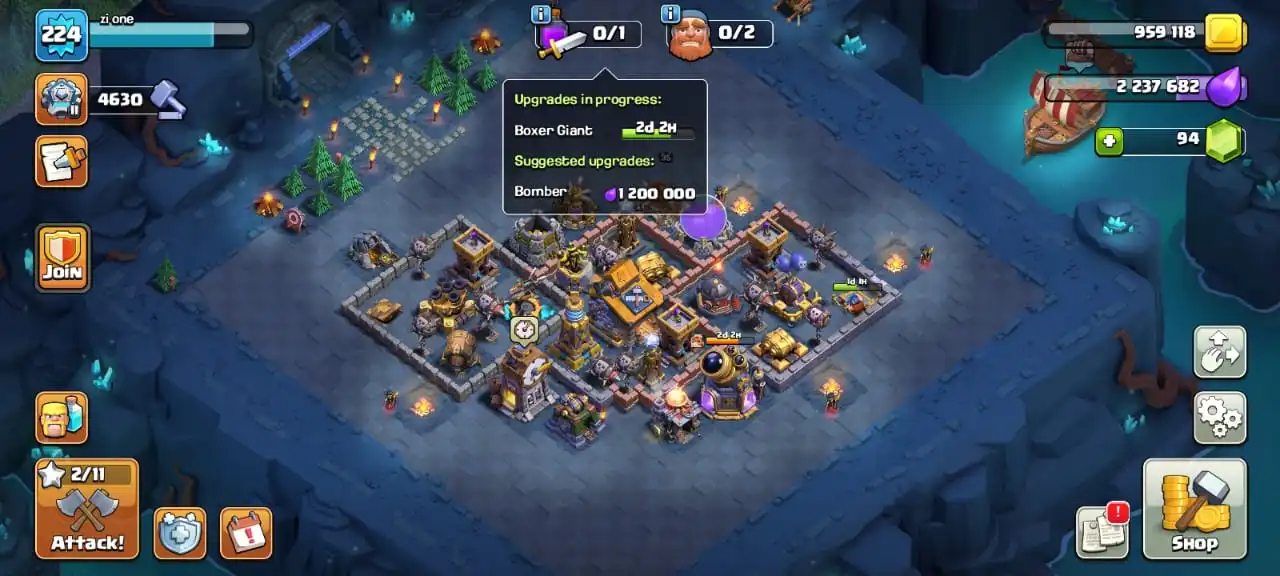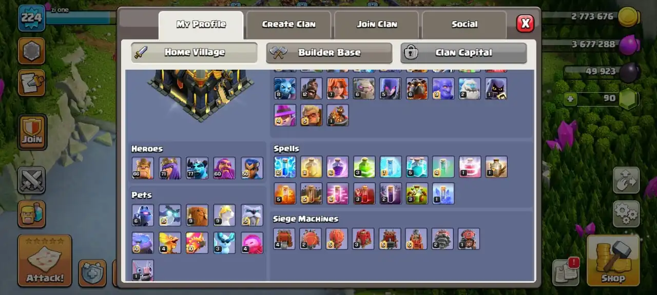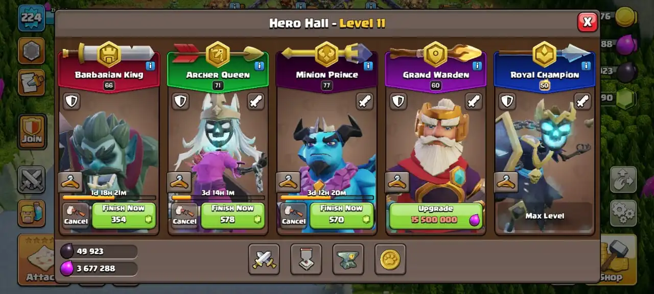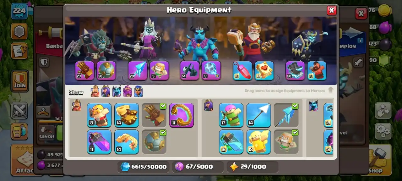Donation acc✅TH 17 almost max🔥heroes level 66/71/77/60/50☠️11 epic equipment⚒️6 builder’s✅15 heroes skin