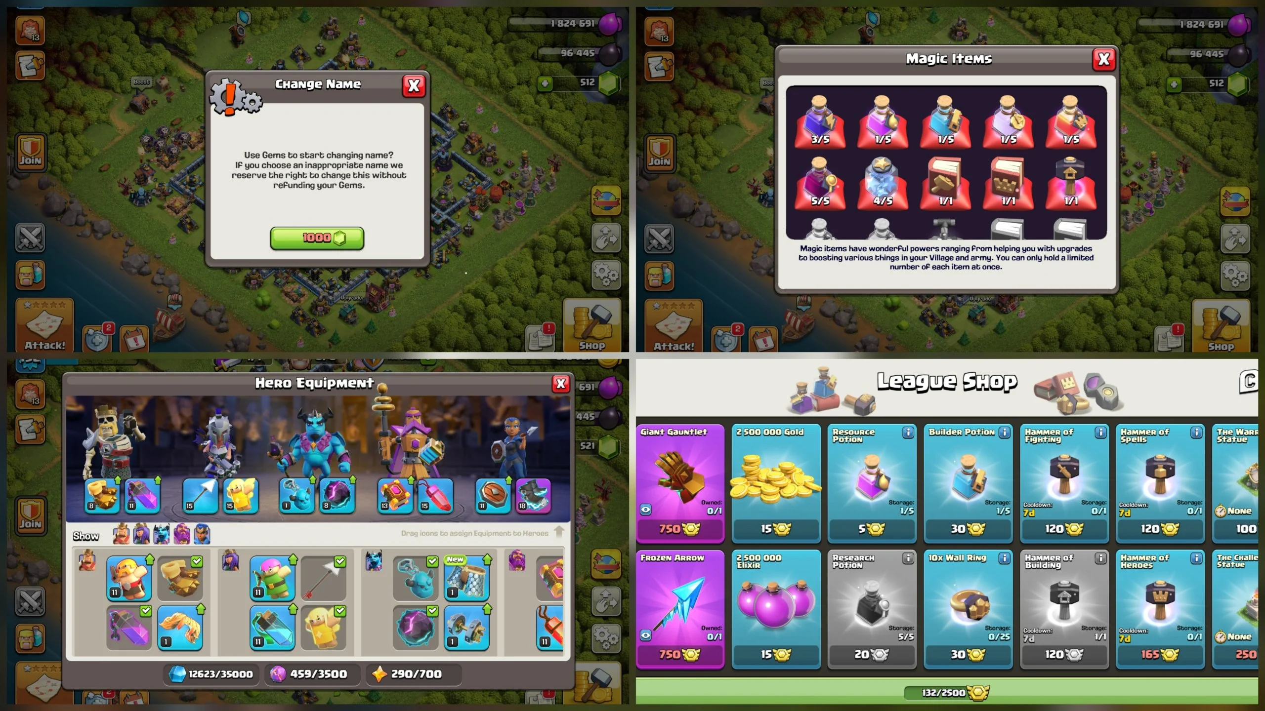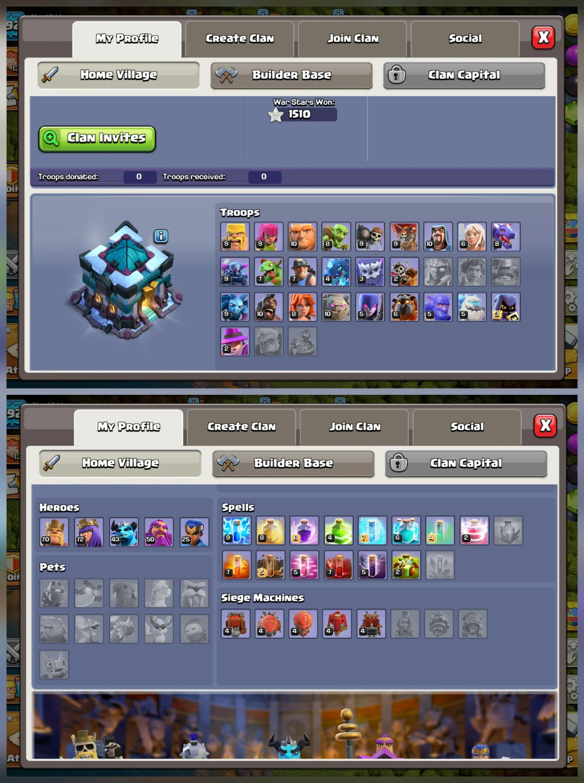✨[🔥ELITE TH13]✨ ⭐️192 XP 🎁MAGIC ITEMS INCLUDED 💎512 GEMS 🦸♂️HERO LEVELS: 👑70 | 🛡️72 | 🔥43 | 🌟50 | ⚔️25 ✍️1K GEMS RENAME ⚡️QUICK DELIVERY ✅