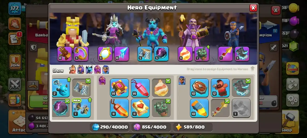 Flash sale🔥TH 14 max defense🔥high heroes level 74/80/50/55/30☠️9 epic equipment⚒️6 builder’s⭐️1936 cwl medal✅cn on✅3 legendary heroes skin