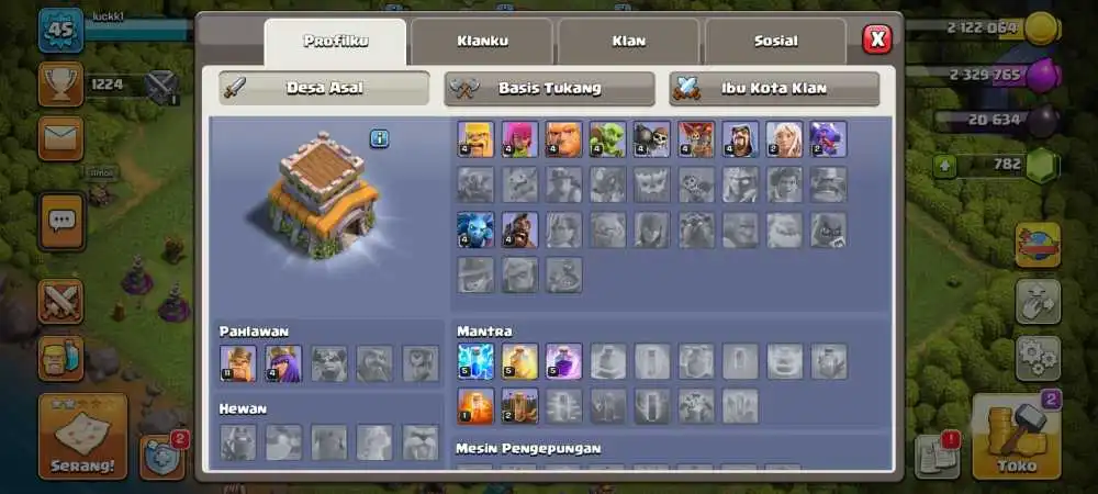 IT 648⚡TH 8 MAX WALL AND FREE NC⚡LVL 45🛡KING 11🛡QUEEN 4🛡MANY MAGIC STUFF+MANY LEAGUAE POIN🛡SAFE ACCOUNT⚡