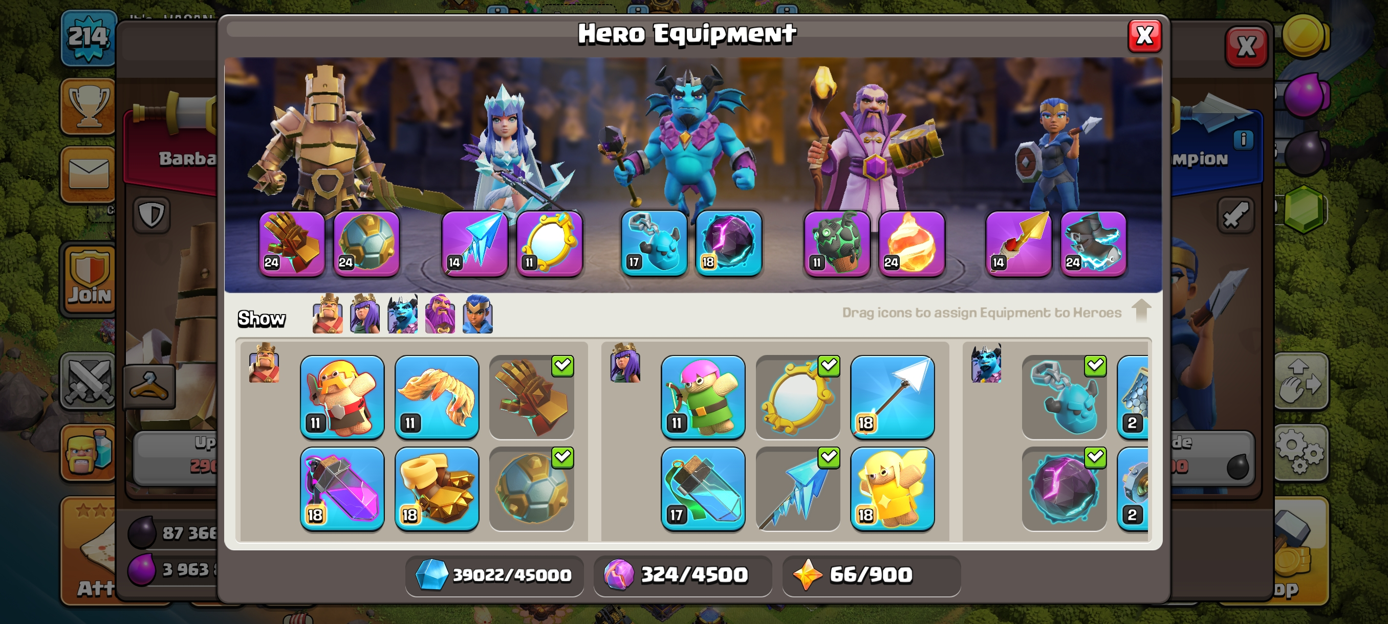 League King-8X Epics GG-SB-FB-EB Max-Th15 Full Max-Xp214-Hero 90-90-65-65-40-Builder Hall Max-Wall Defense Max-Nc 500