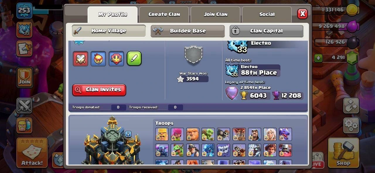⭕️ LEAGUE KING ⭕️ TH 17 MAX FULL ⭕️ 10 EPIC MAX ⭕️ 2x SCENERIES ⭕️ 30 EQUIPMENTS MAX ⭕️ 12000 L.CUPS ⭕️ HERO SKINS ⭕️ STACKED ⭕️ INSTANT EMAIL ACCESS ⭕️ S09