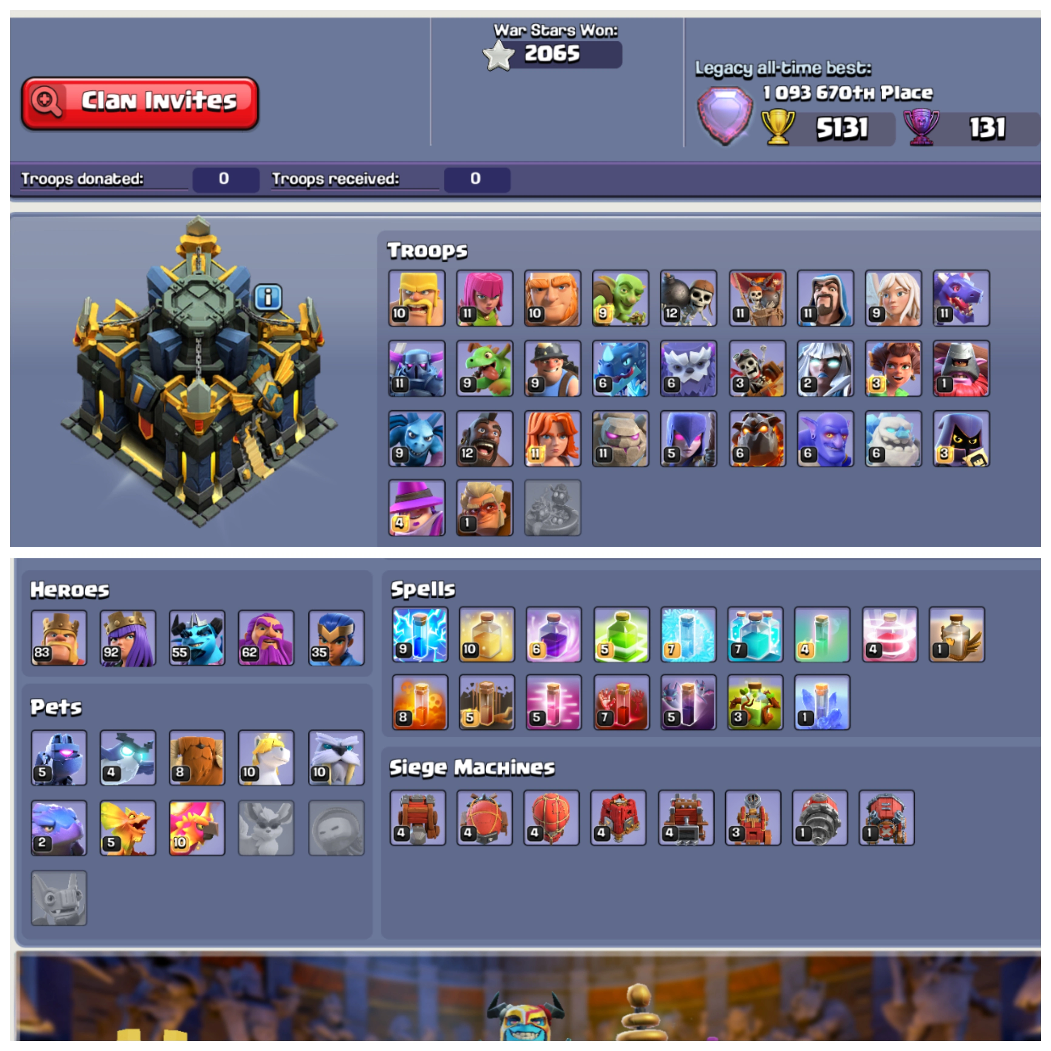 🏝️ Rare High Sea Scenary & Clash Trees 🌟 TH 17 Blending Machine 💎 XP 217 🦸 All Heroes Skins ⚔️ Heroes BK83 🧚 AQ92 🧙 MP55 🛡️ GW62 🐉 RC35 🚀 Instant Delivery