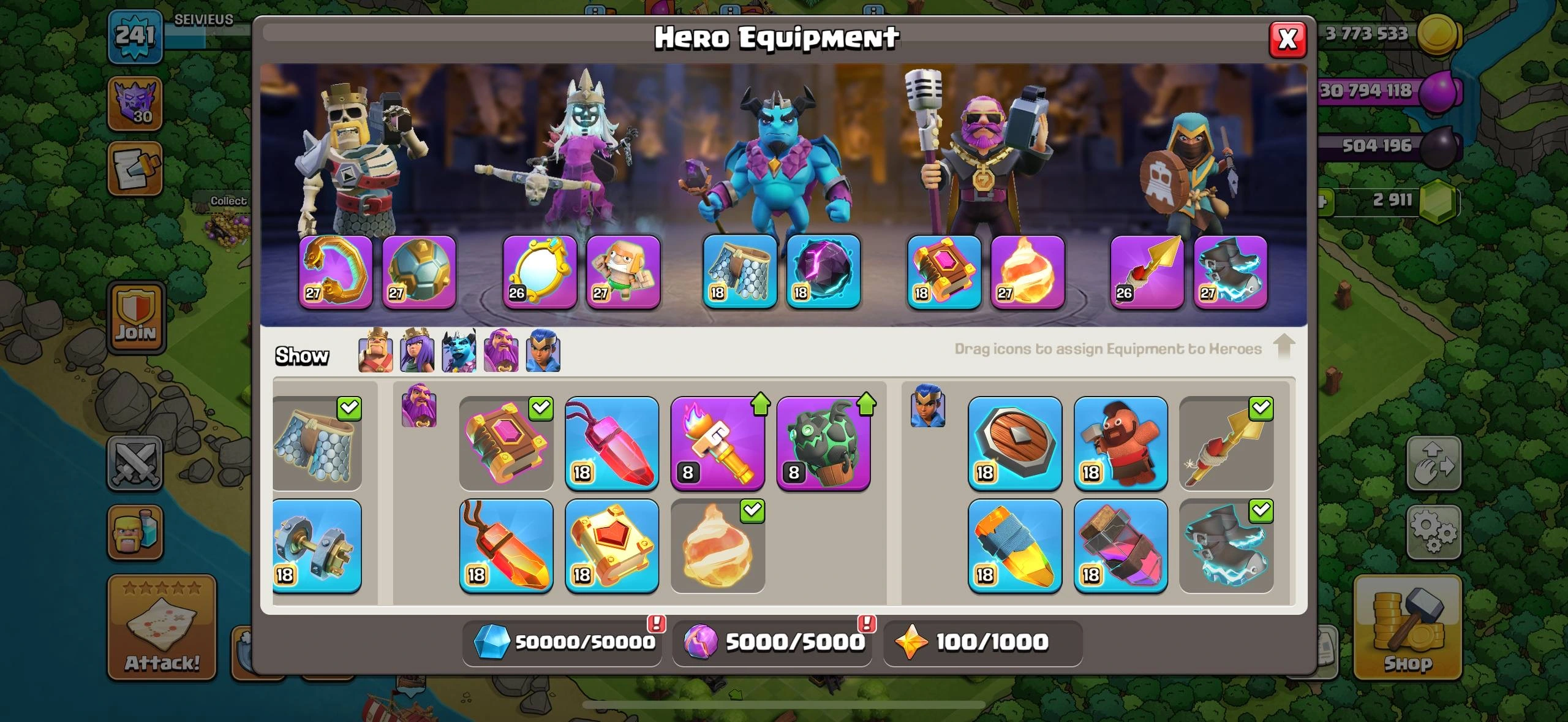 🔥RARE WAR ARENA SCENRY🔥FULLY MAX TH 17🍀8 EPIC MAX-28 EQUIPMENT MAX🥵RENAME AVAILABLE💢3k GEMS 💎 100 CWL MEDAL  GOOD MAGIC ITMES  COOL SKINS💢SAFE😍INSTENT DELIVERY