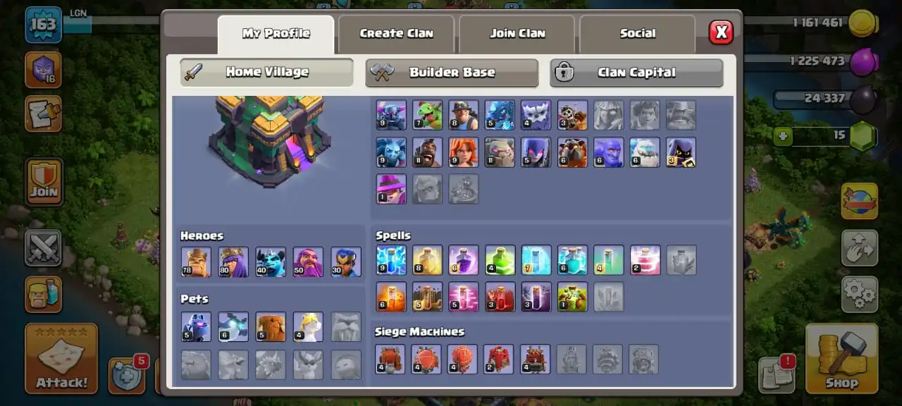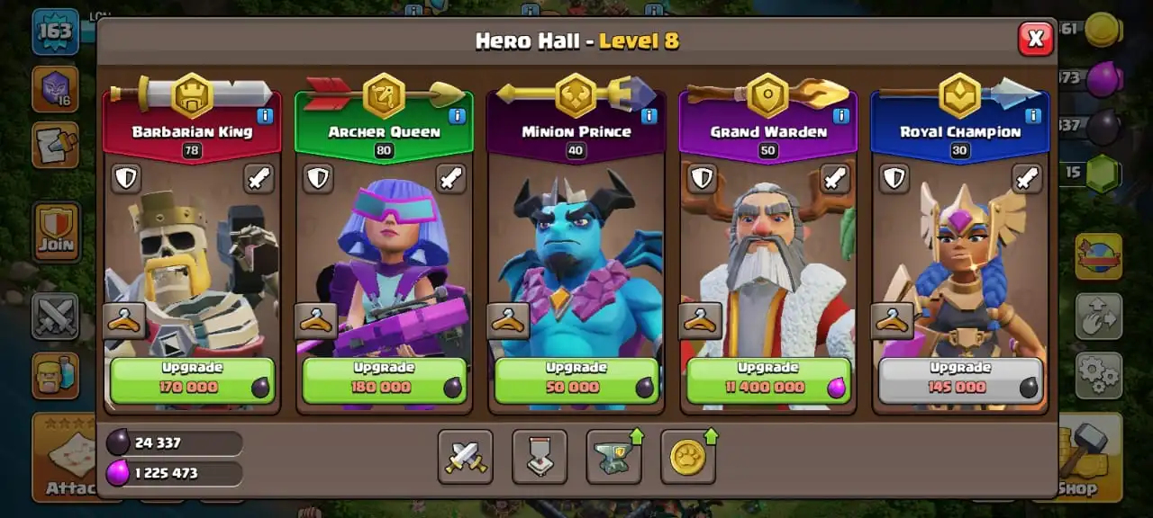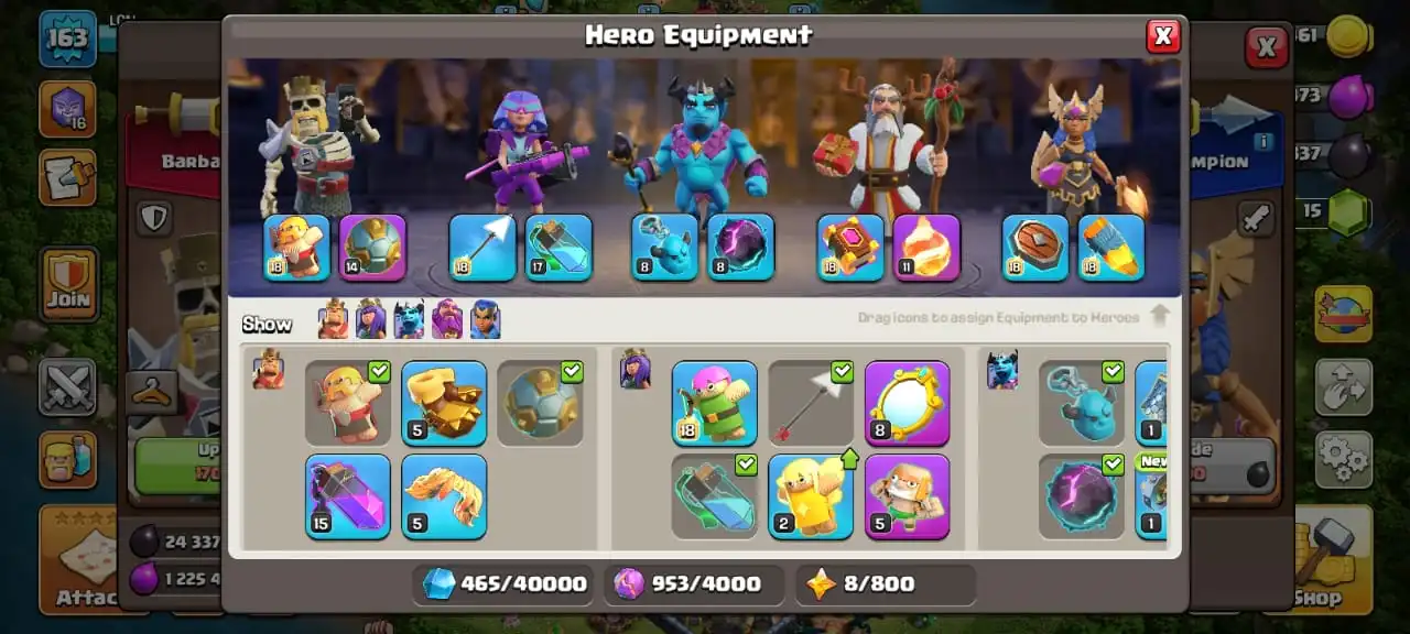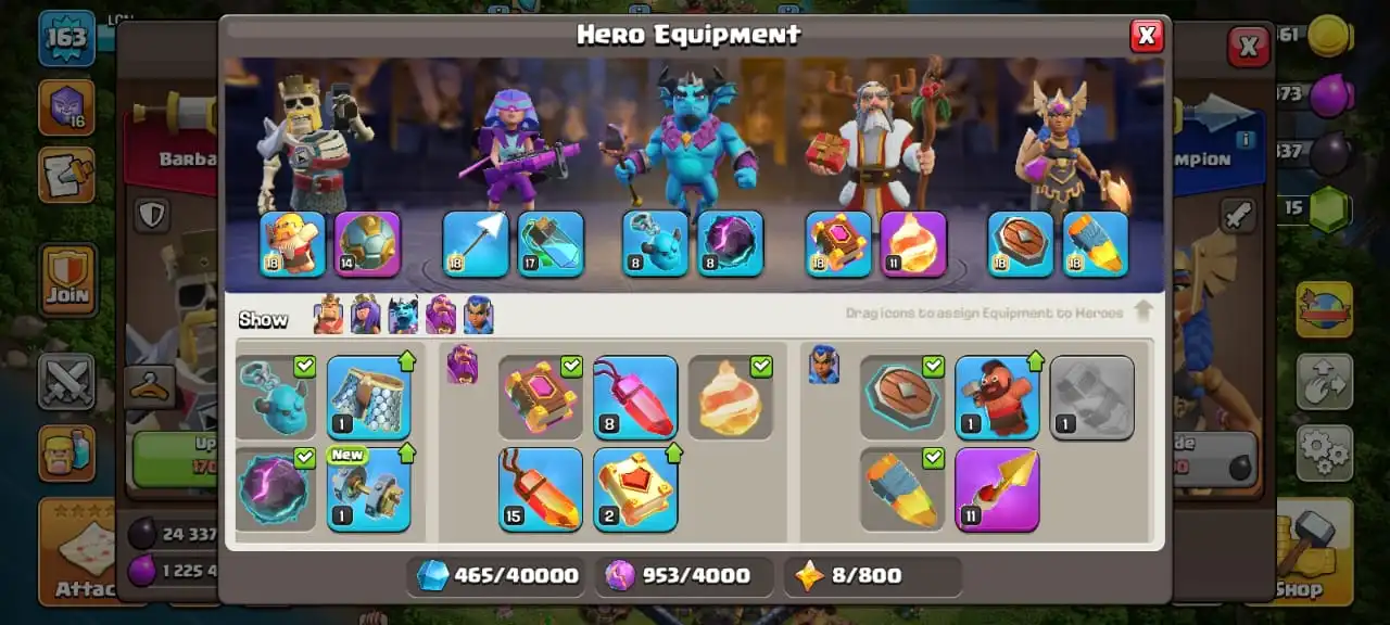 Sale✅TH 14 max defense🔥high heroes level 78/80/40/50/30☠️5 epic epic equipment✅8 heroes skin