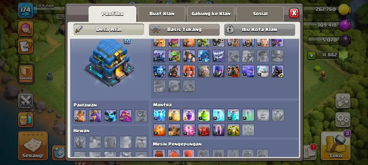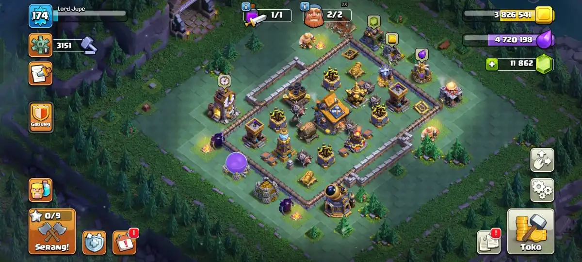 TH 12 XP 174 | HERO MAXD 65-55-40--40 | GEMS 11.862 | CHANGE HAME 500 GEMS | WALL GOOD | DEFENSE GOOD | INSTAN DELIVERY.