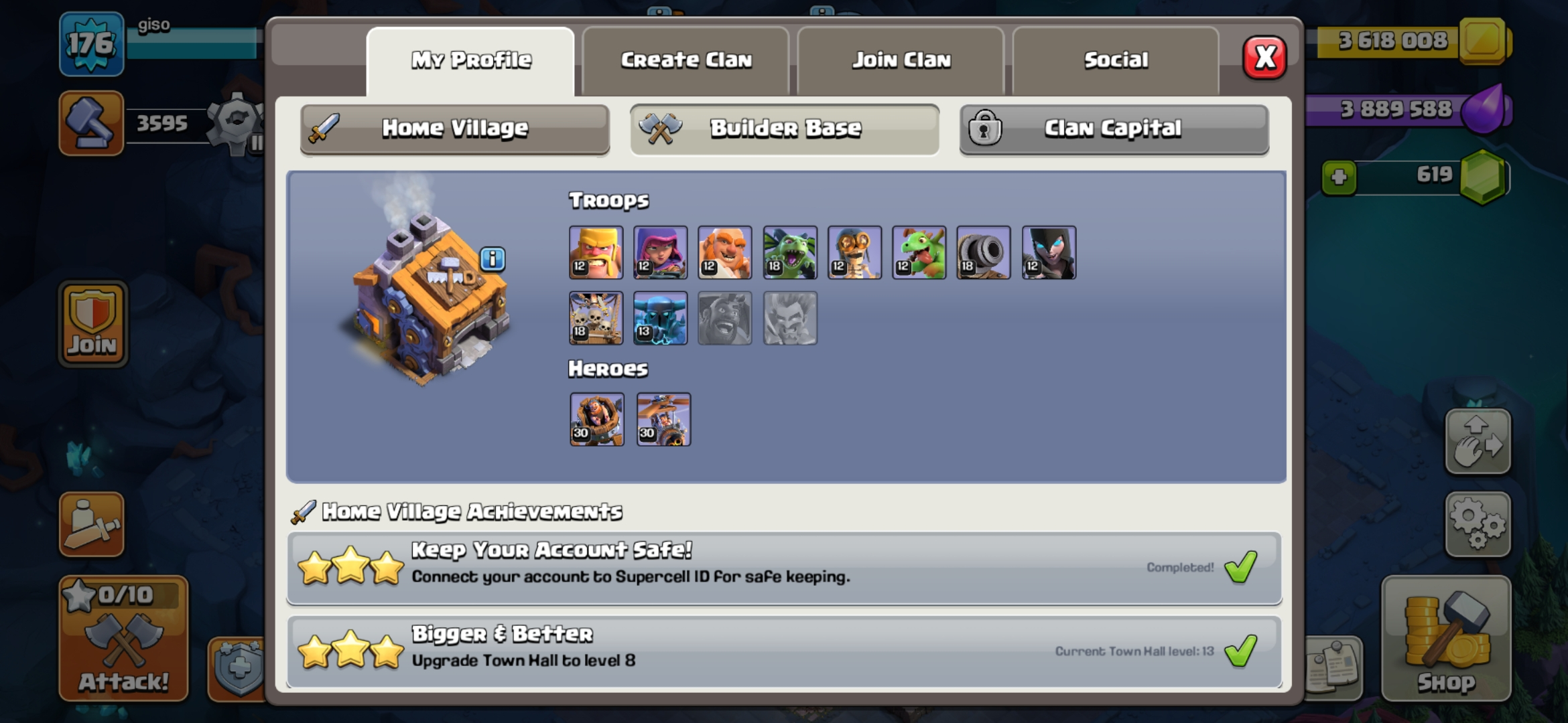 TH 13 MAX ⸱ (HEROES 73-75-40-50-25) ⸱ LEVEL 176 ⸱ FAST DELIVERY ⸱ (IOS-ANDROID)