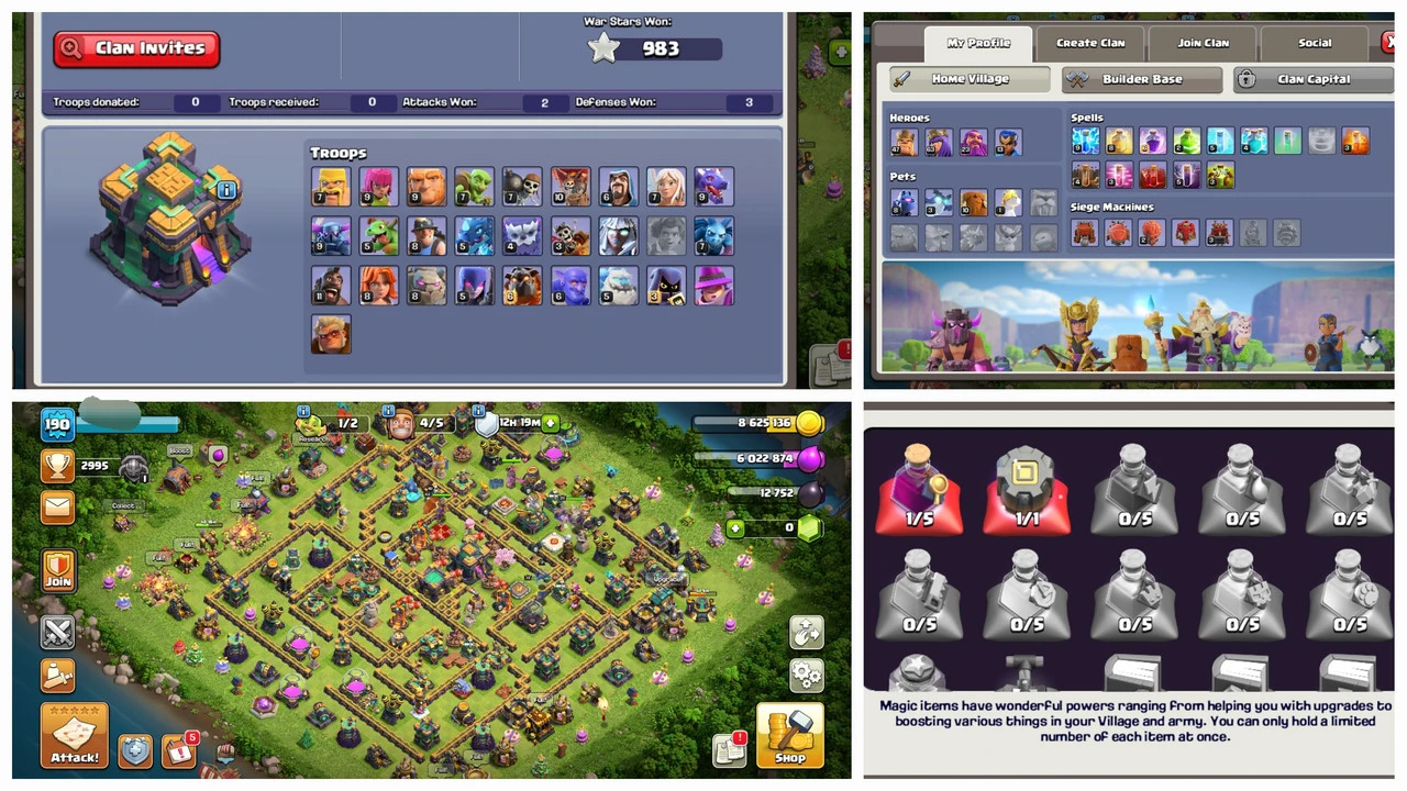 TH 14 Near Max Defence 🛠️ Level 190 🧝♀️ Heroes 47_63_23_13 🎯 5 Worker ⚙️ 5 Skins 👑 3 Epic equipment (Android &iOS) 🗡️ M1360