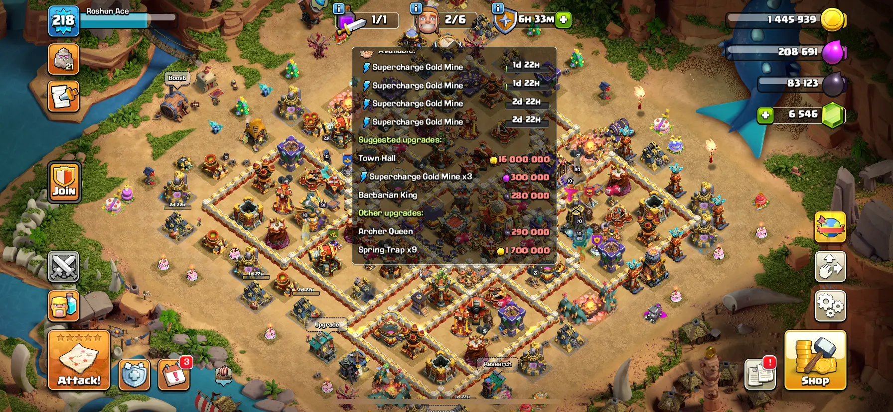 TH 16 ALL MOST MAX [ 16 HERO SKIN ] HERO LEVEL 91-91-80-70-45 EQUIPMENT EPIC FULL 🔥 REMAINDER HERO🔥 CN FREE GEMS 6.546🔥 SCENERY ON 🔥 INSTAN DELEVERY 💯