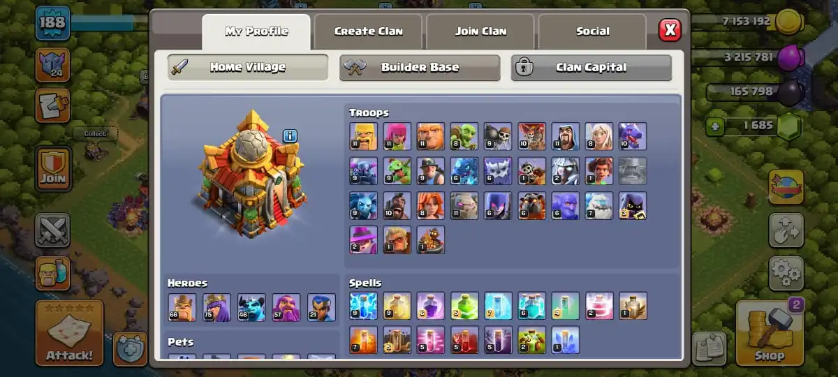TH 16 ALL MOST MAX🔥HEROES 66-75-46-57-21 GIANT GAUNTLET & SPIKY BALL & MAGIC MIRROR & FIRE BALL & ROCKET SPEAR ON🔥MAGIC ITEMS READY🔥JUNGLE & PIXEL & CLASHRAMA & MAGIC SCENERY🔥FULL ACCESS ACCOUNT🔥