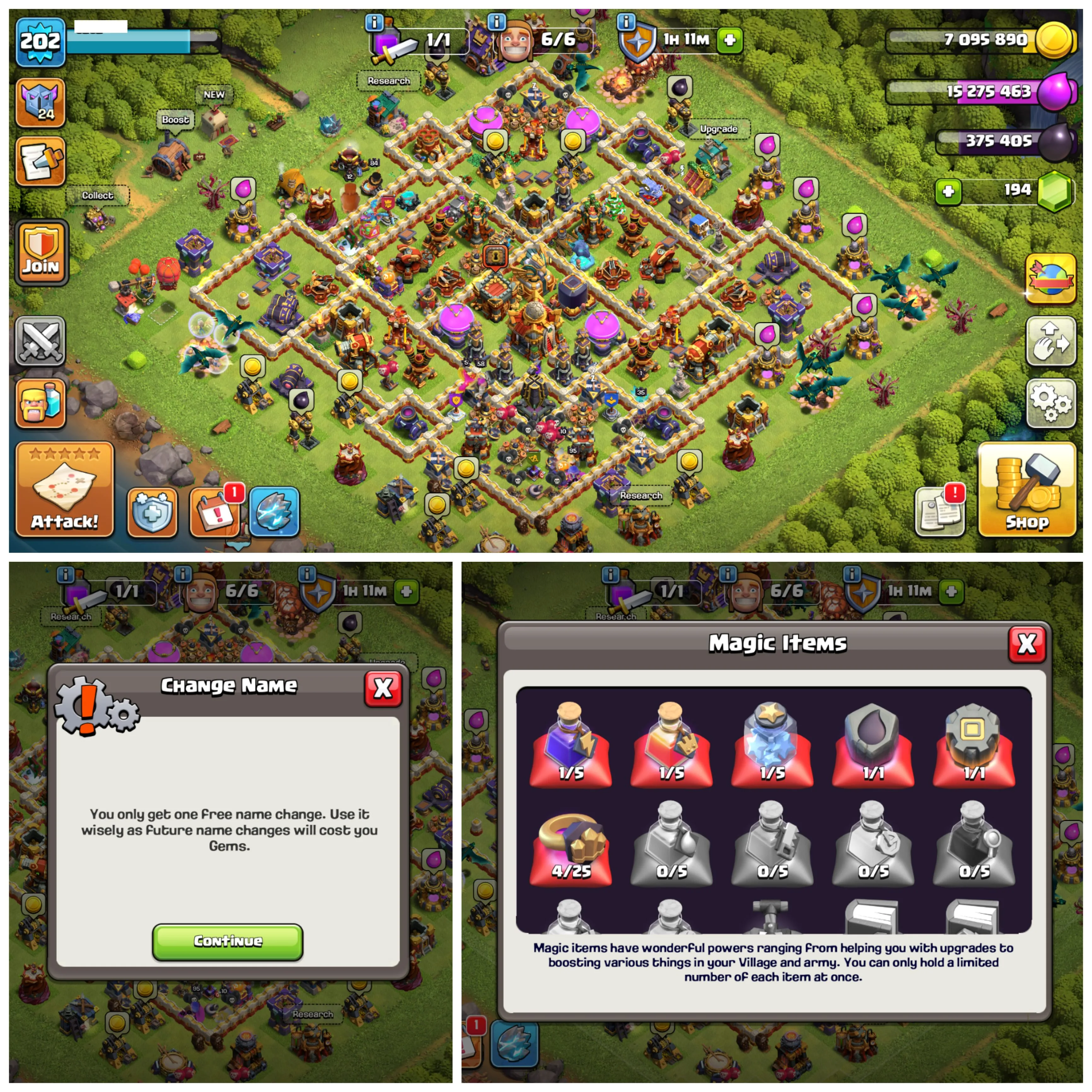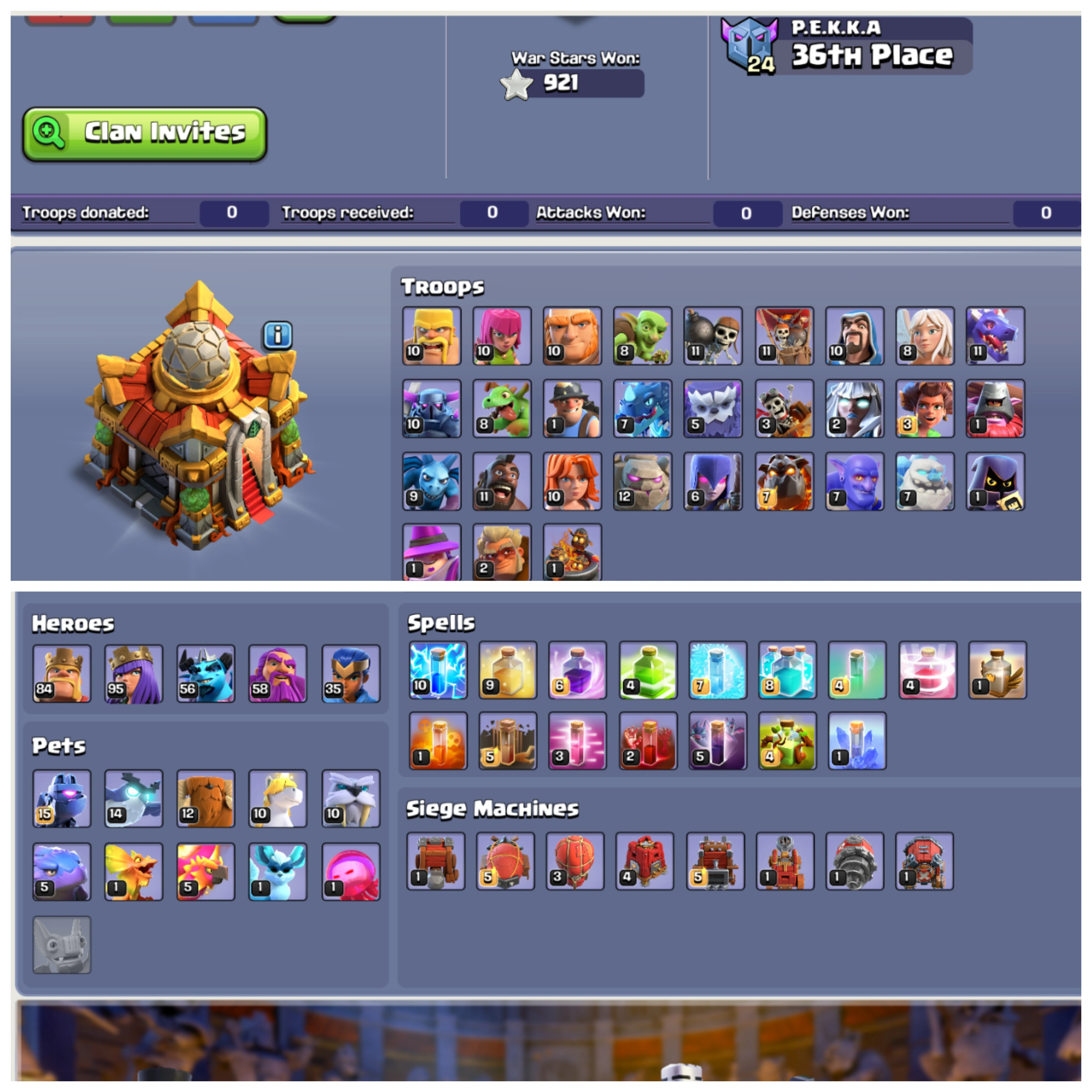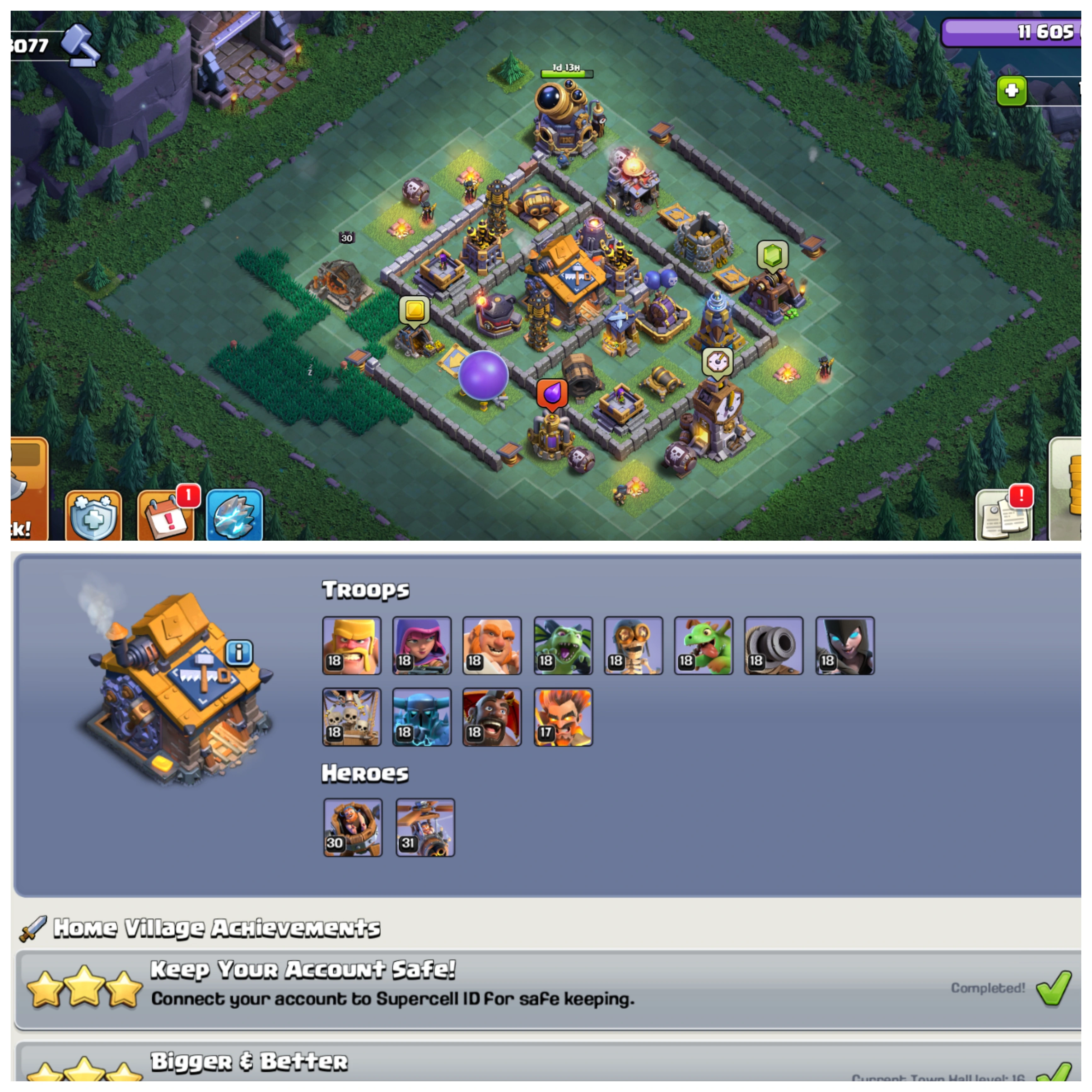 💎 TH 16 Almost Maxed Out 🔥 11 Epic Equipments ⚔️ Heroes BK84 🧚 AQ95 🧙 MP56 🛡️ GW58 🐉 RC35 🧾 Free Name Change 🌈 5 Heroes Skins ⚡ Instant Delivery