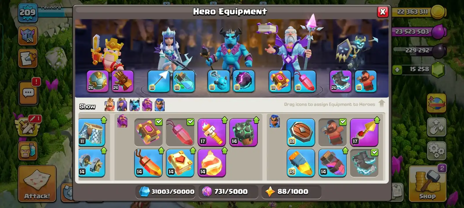 💢TH 16 MAX TYPE✅ HEROS-73-73-58-61-41⚡HIGH GEMS🔥15000+ GEMS 💥 10X EPIC EQUIPMENT🔥 NC-FREE⭐LEAUGE SKIN WARDEN👌 1700+ CWL MEDAL🥳 EPIC CLOSE MAX✅ OBSTACLES