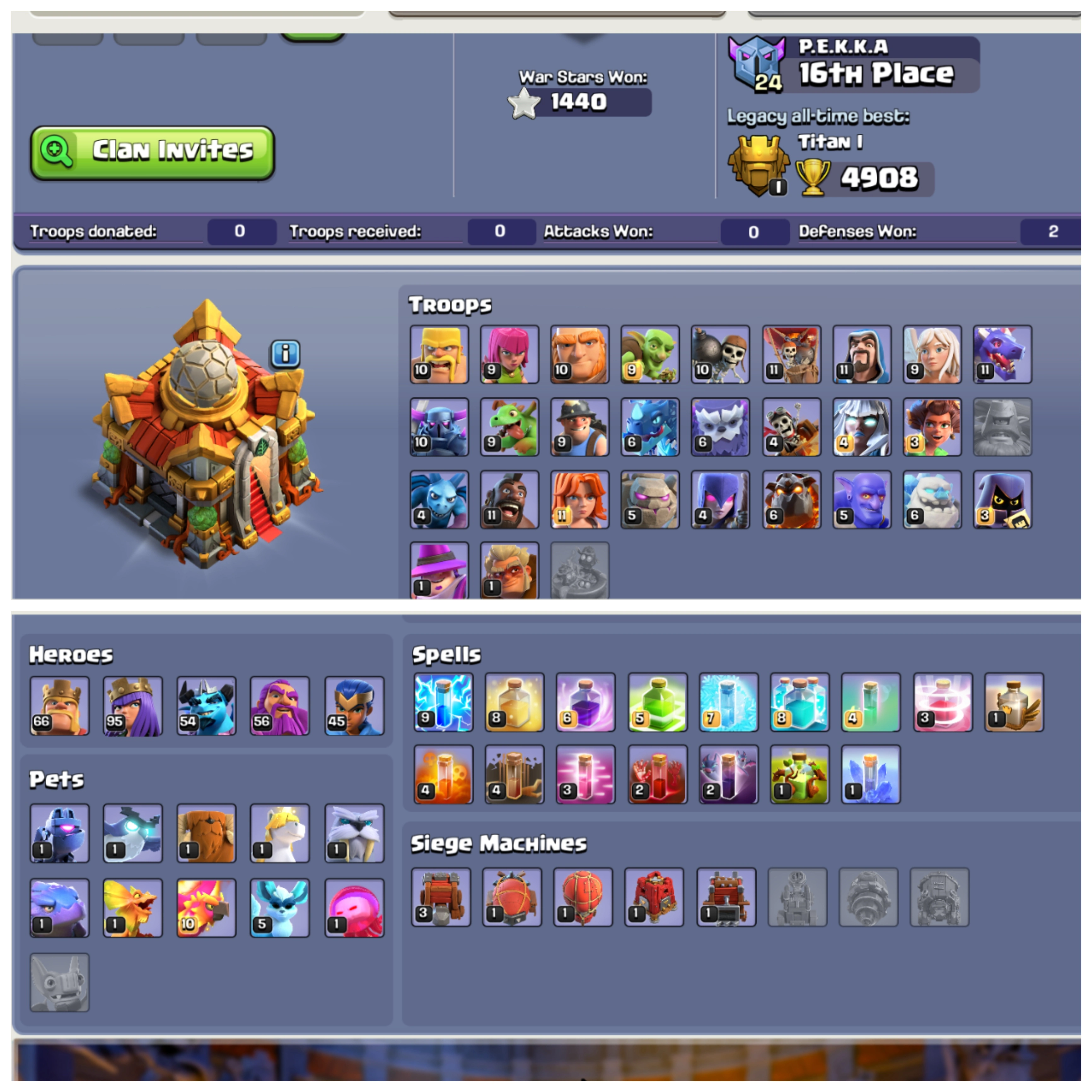 💥 TH 16 Near Max 💎 12 Epic Equipments {2 Max} ⚔️ Heroes BK66 🧚 AQ95 🧙 MP54 🛡️ GW56 🐉 RC45 {2 Max} 🧾 Name Changeable 🎒 Stacked Items ⚡ Instant Delivery