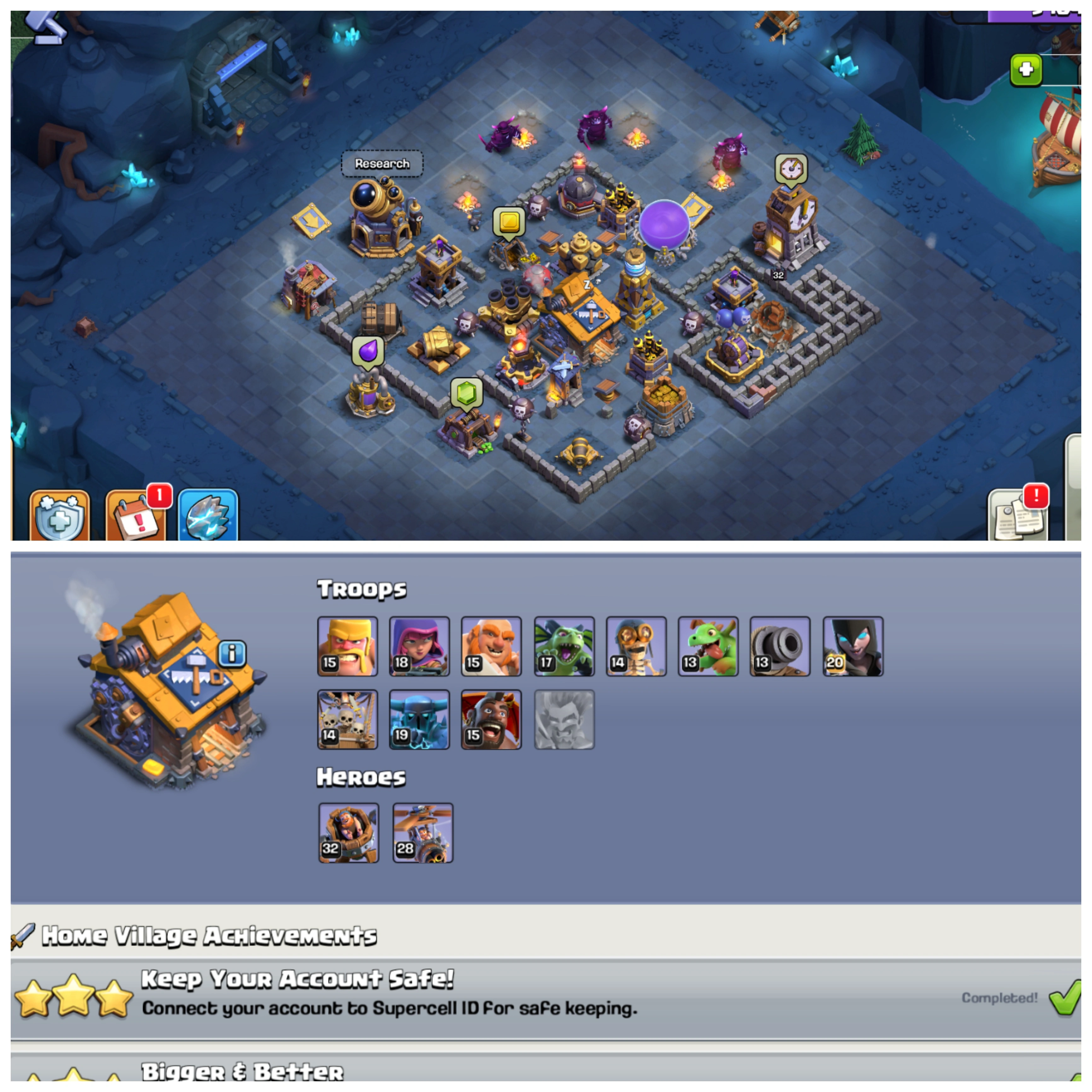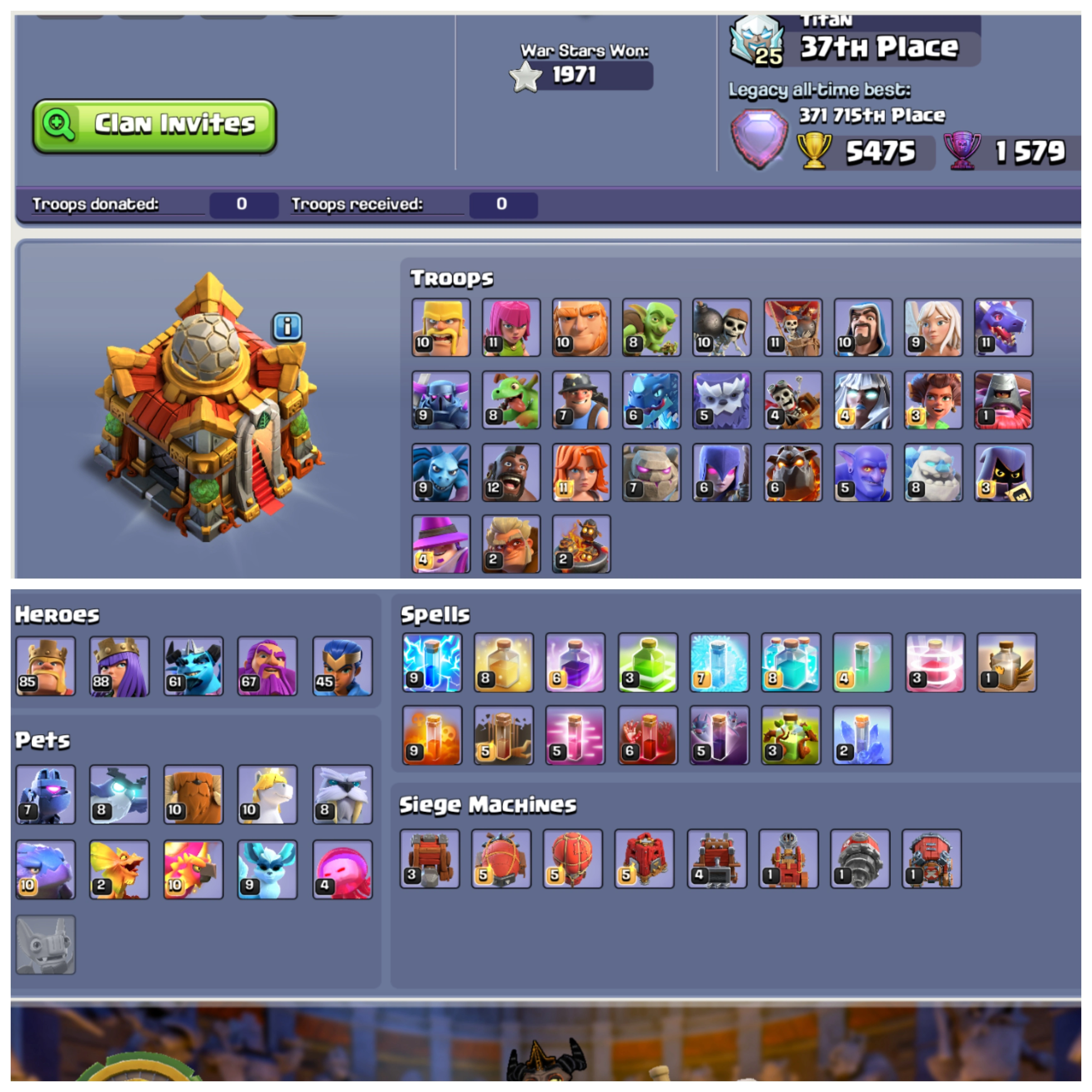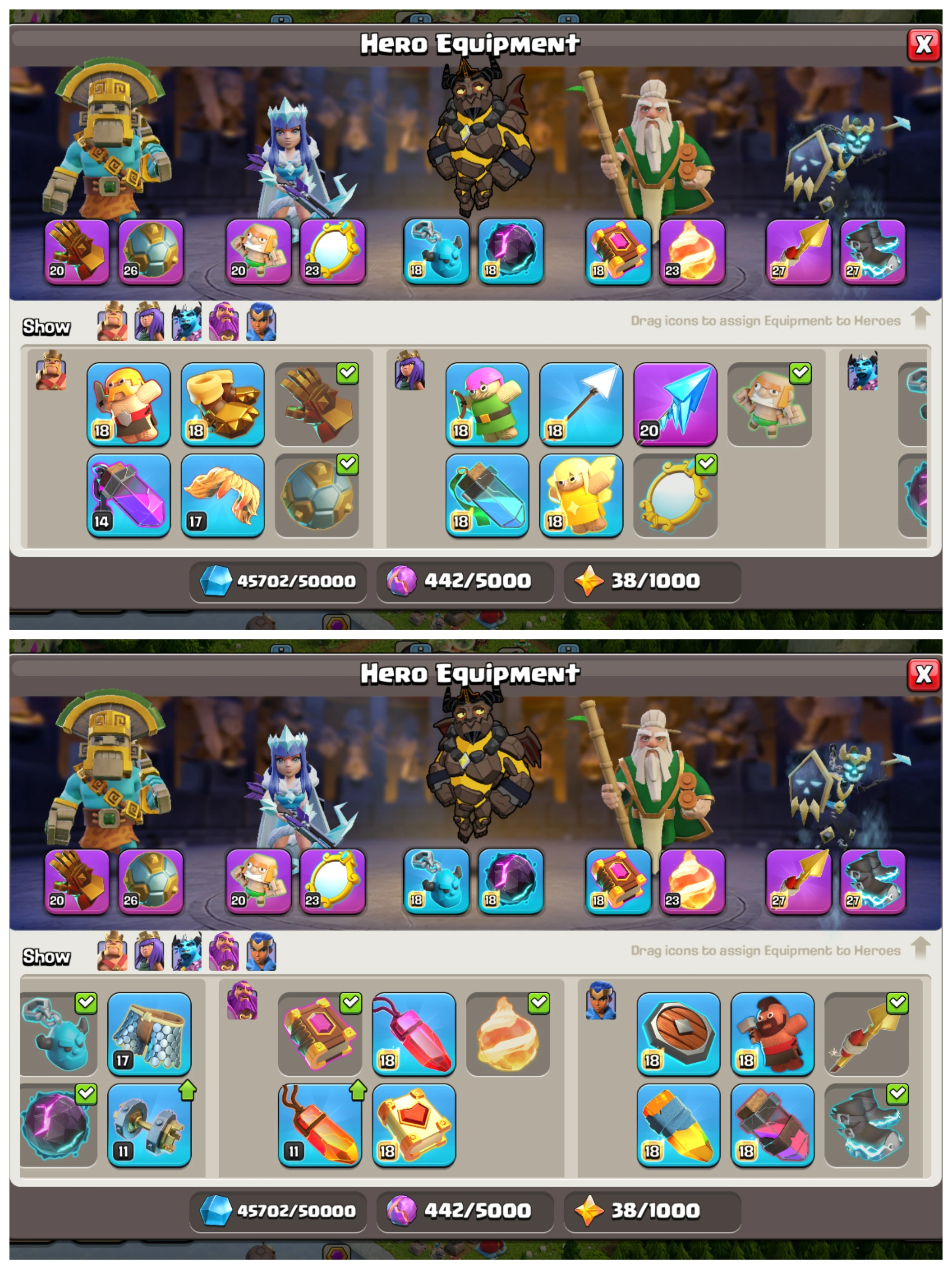 🏰 TH 16 Near Max 💫 XP 222 💎 8 Epic Equipments {17 Max} ⚔️ Heroes BK85 🧚 AQ88 🧙 MP61 🛡️ GW67 🐉 RC45 🎨 7 Skins 🎒 Stacked Magic Items ⚡ Instant Delivery