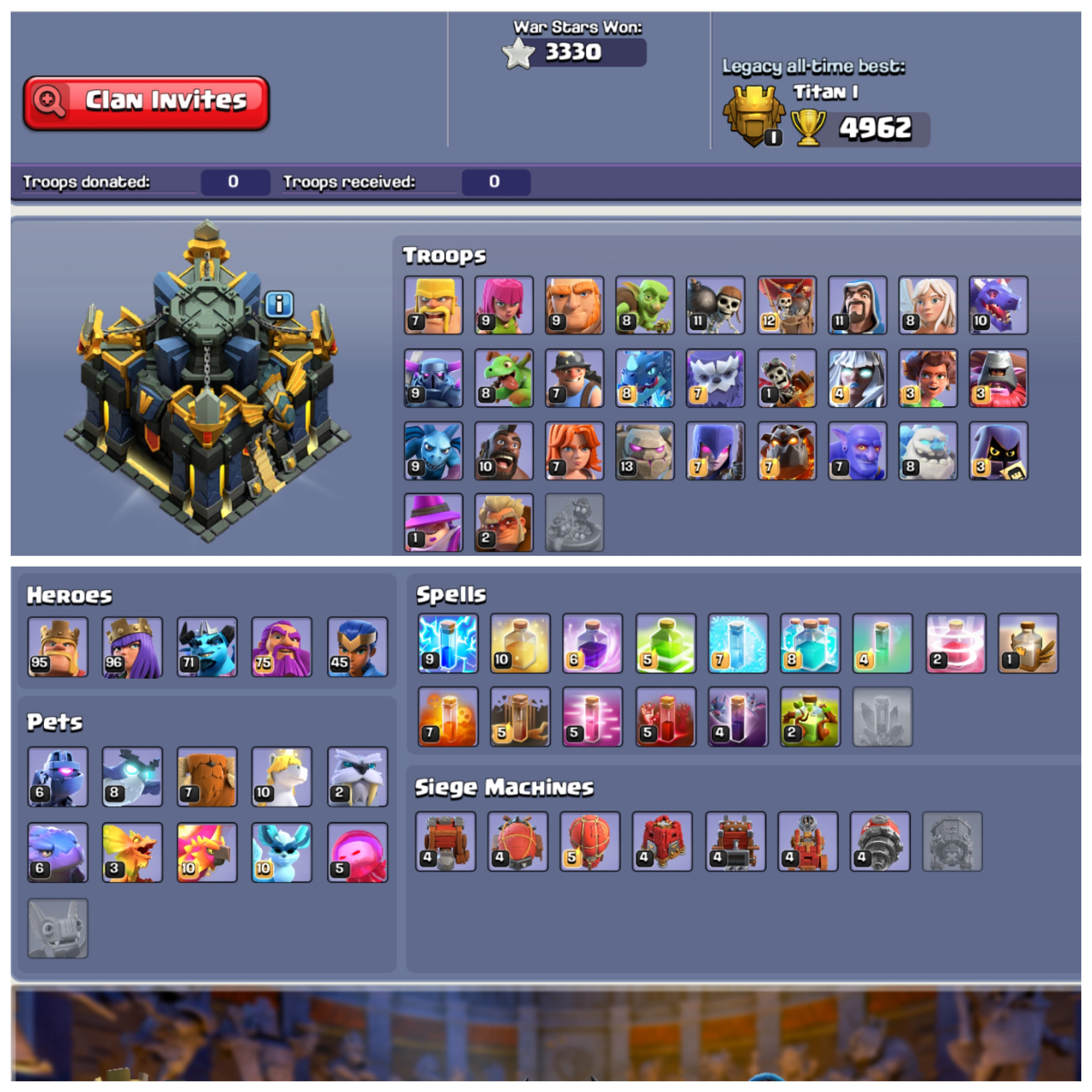 🚀 TH 17 Cosmos Space 🌌 XP 236 💎 12 Epic Equipments ⚔️ Heroes BK95 🧚 AQ96 🧙 MP71 🛡️ GW75 🐉 RC45 💫 Was Max TH16 🎨 6 Skins 🎒 Full Stacked ⚡ Instant Delivery