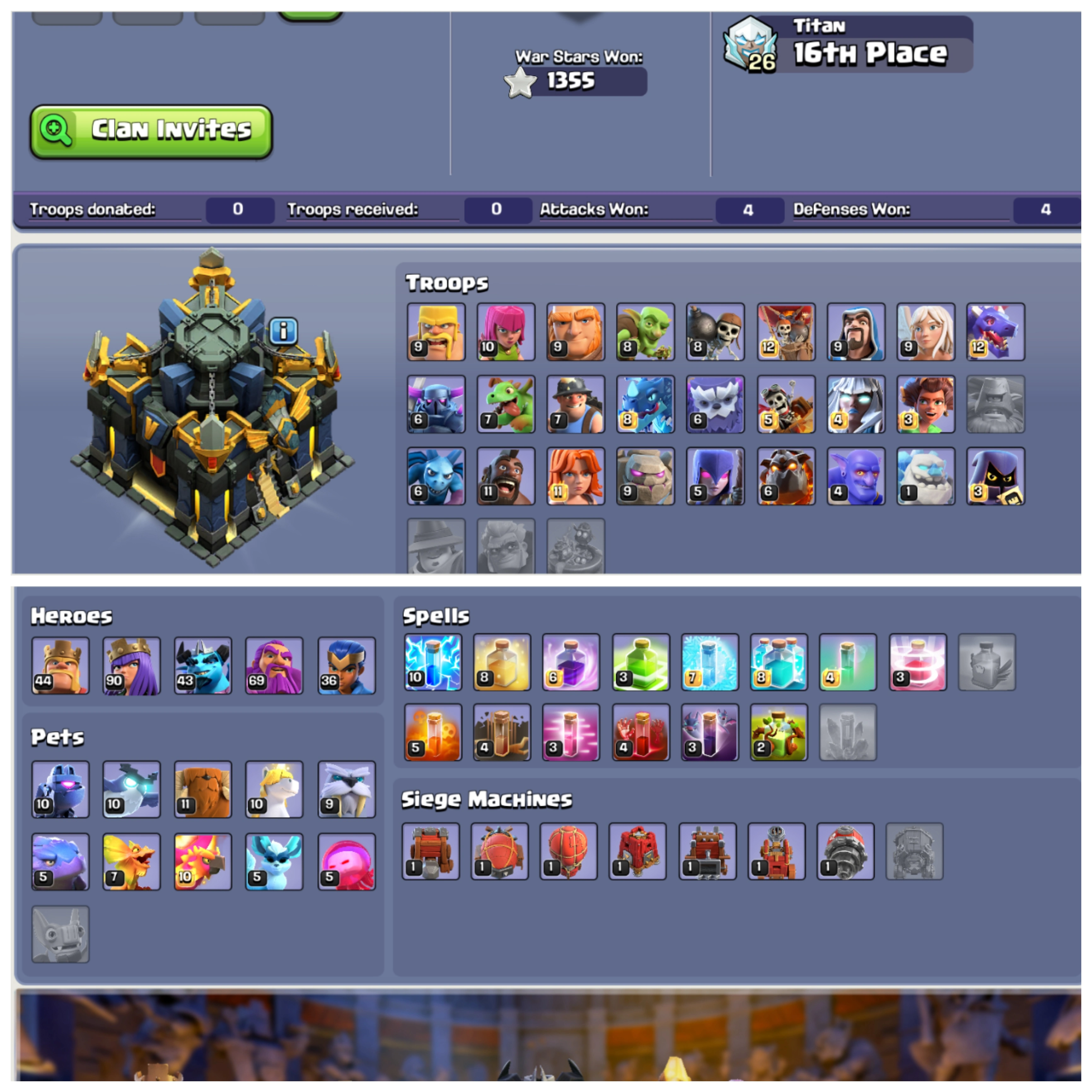 🎯 TH 17 Smartest Upgrade 🧠 Core Defence Max ⚔️ Heroes BK44 🧚 AQ90 🧙 MP43 🛡️ GW69 🐉 RC36 💎 4 Epic Equipments {2 Max} ⚡ Instant Delivery