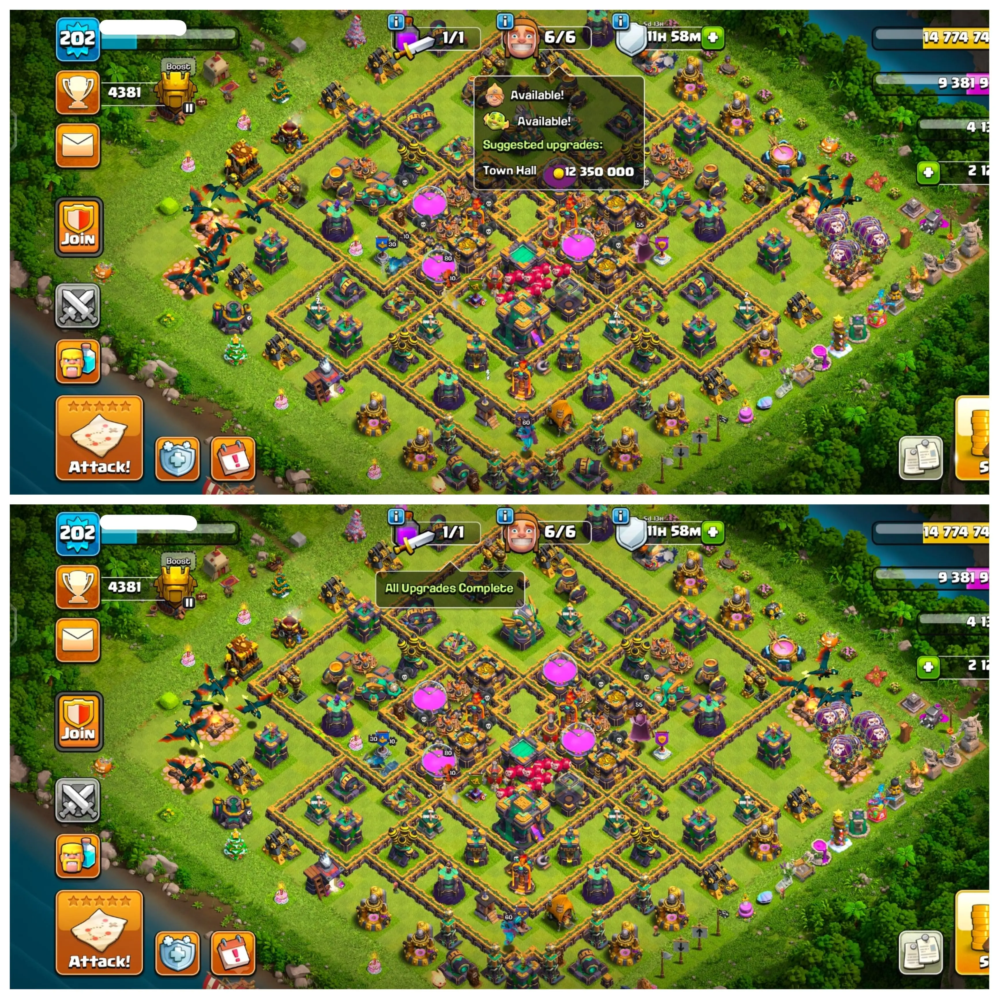 TH14 PURE MAX ❄️ PHILLIPINES LOCAL ❇️ ACTIVE GOLD PASS ✴️ 186 XP LVL ✳️ NORMAL HERO LVL LEFT OTHERWISE FULL MAX 🧨