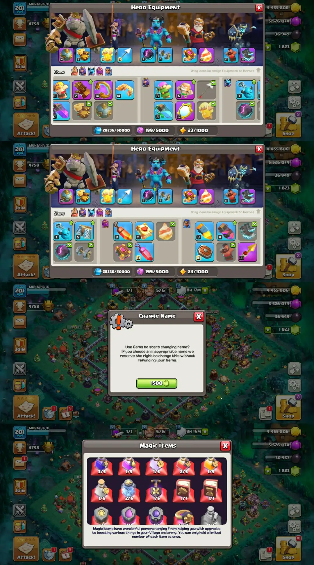 TH17 Near Max【CHEAP AND BEST】⚡HERO: 55-67-40-36-19⚡GOD EQUIPMENTS⚡NC 1500 GEMS⚡XP 201⚡PUMPKIN GRAVEYARD SCENERY⚡GOOD COLLECTION OF HERO SKINS⚡YACOC100