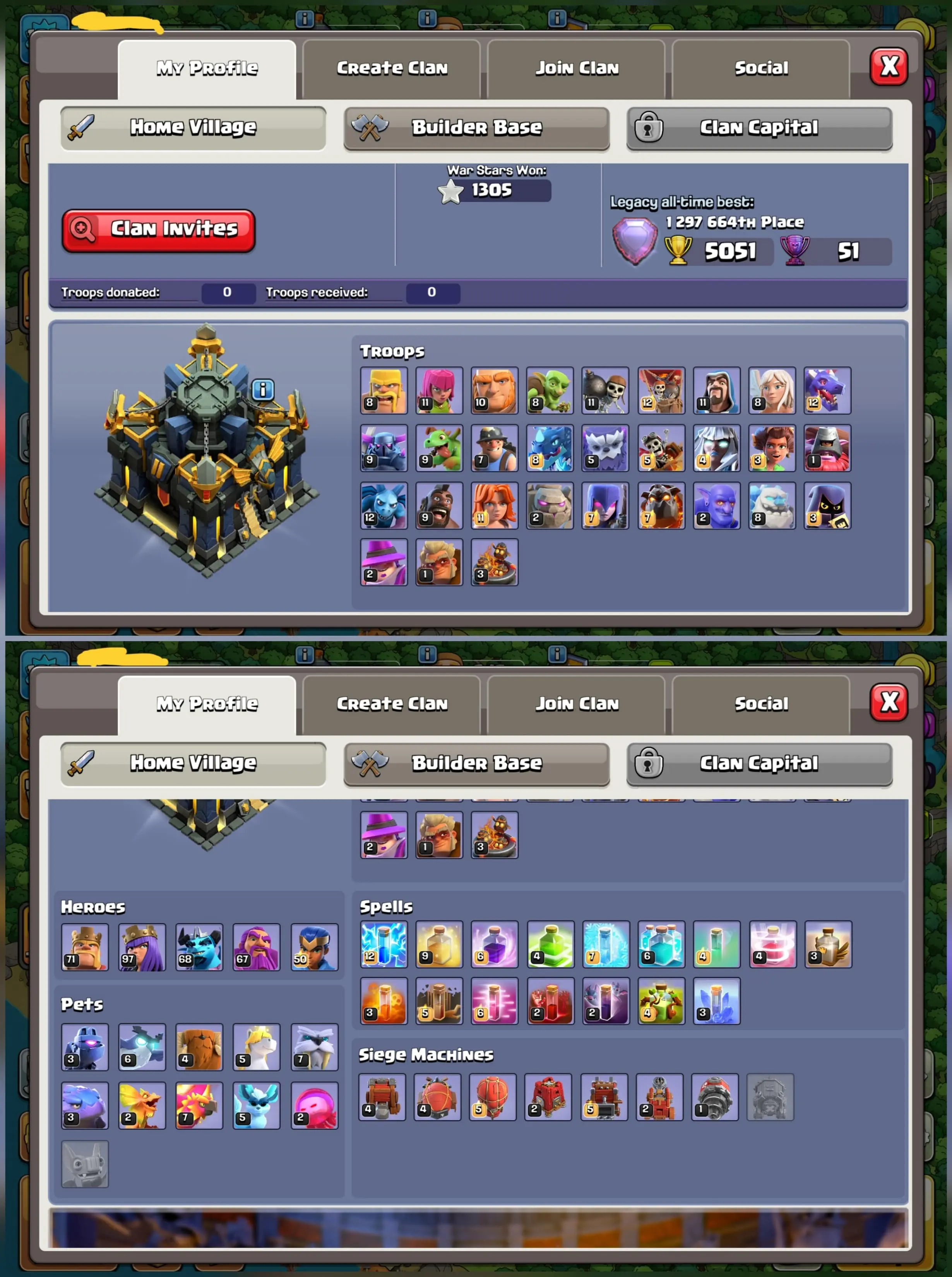 [ USA LOCAL • CHAMPION MAX ] TH17 | XP 193 ⚔️ 9 EQUPMENTS MAX🦸♂️45+ HEROES SKINS 🏅 GOLD PASS ACTIVE [OCT] 🎖️ 590+ CWL MEDALS 🎨 PAINTER SCENERYS 🔄 NAME CHANGABLE 💎 3.2K GEMS
