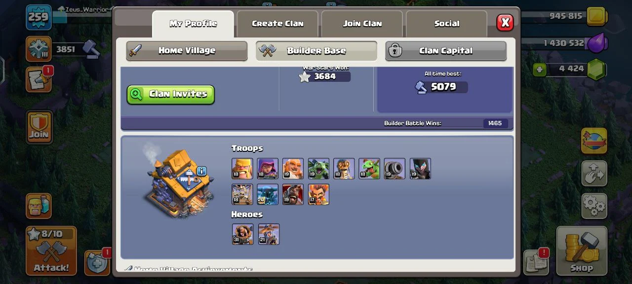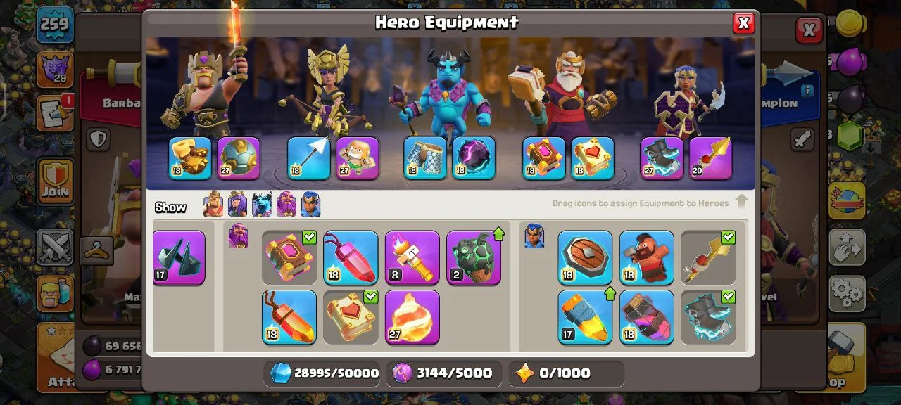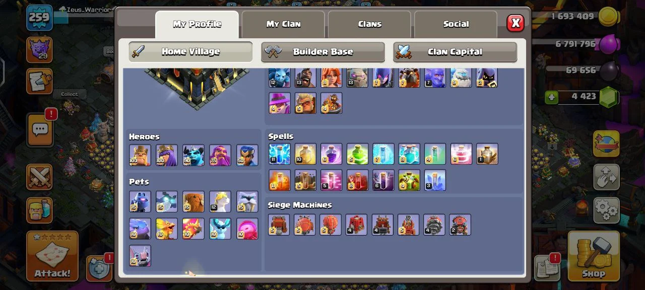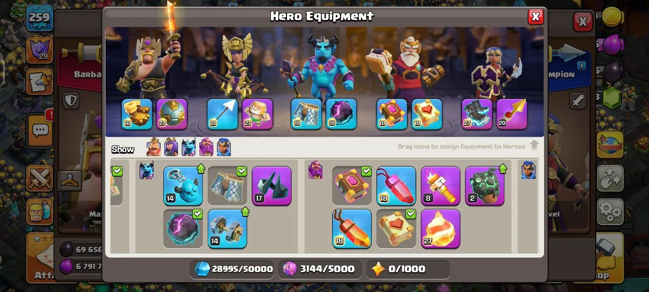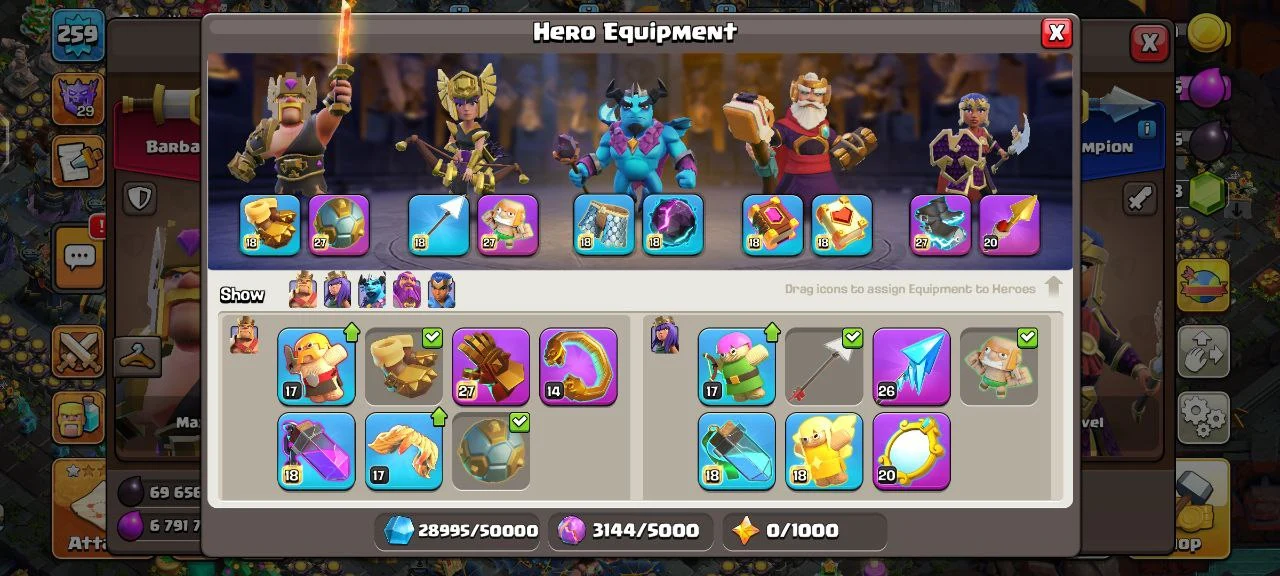 🌟 WORLD RANK 262 🌟 TH 17 MAX TYPE🌟10+ LEGENDARY & 45+ TOTAL HERO SKINS🌟 10+ EXCLUSIVE SCENARY 🌟 5 HEROES MAXED 🌟 20 MAX EQUIPMENTS 🌟 10 MAX PETS 🌟 INSTANT EMAIL PASS ACCESS 🌟 CC23