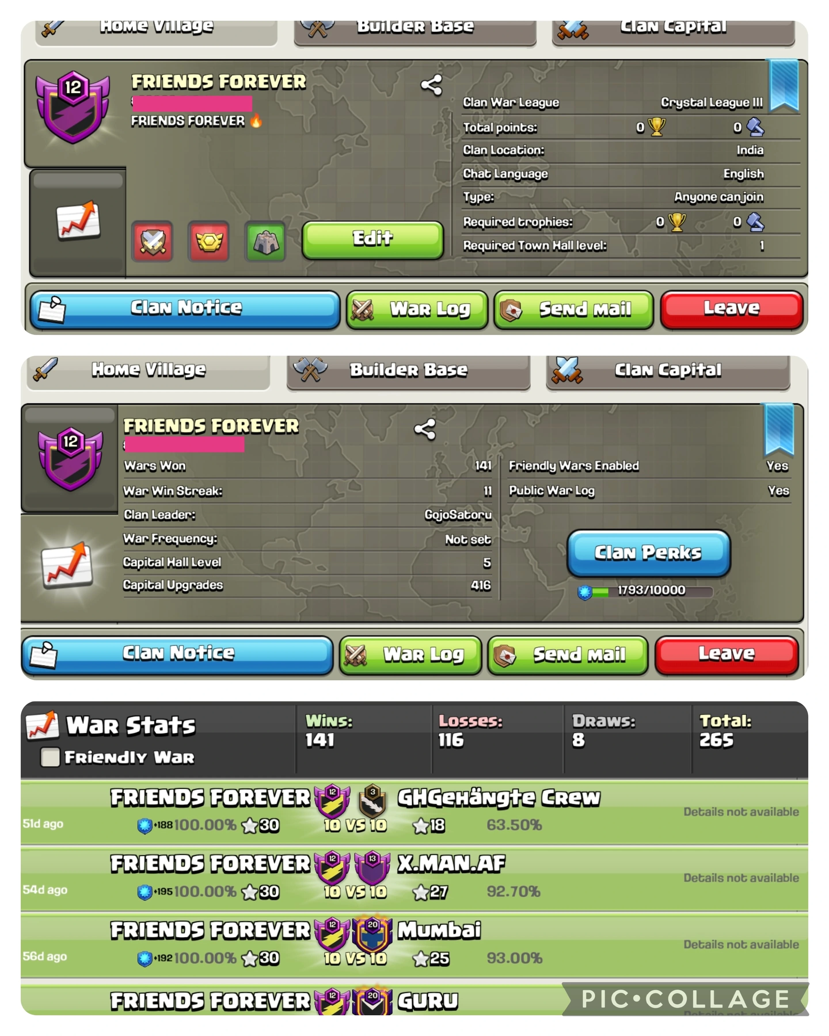 💖11 WIN STREAK CLAN 🫶FRIENDS FOREVER ⚡️CRYSTAL 3 🥰 LEVEL 12 😘WARLOG W-L-D : 141-116-8 💖