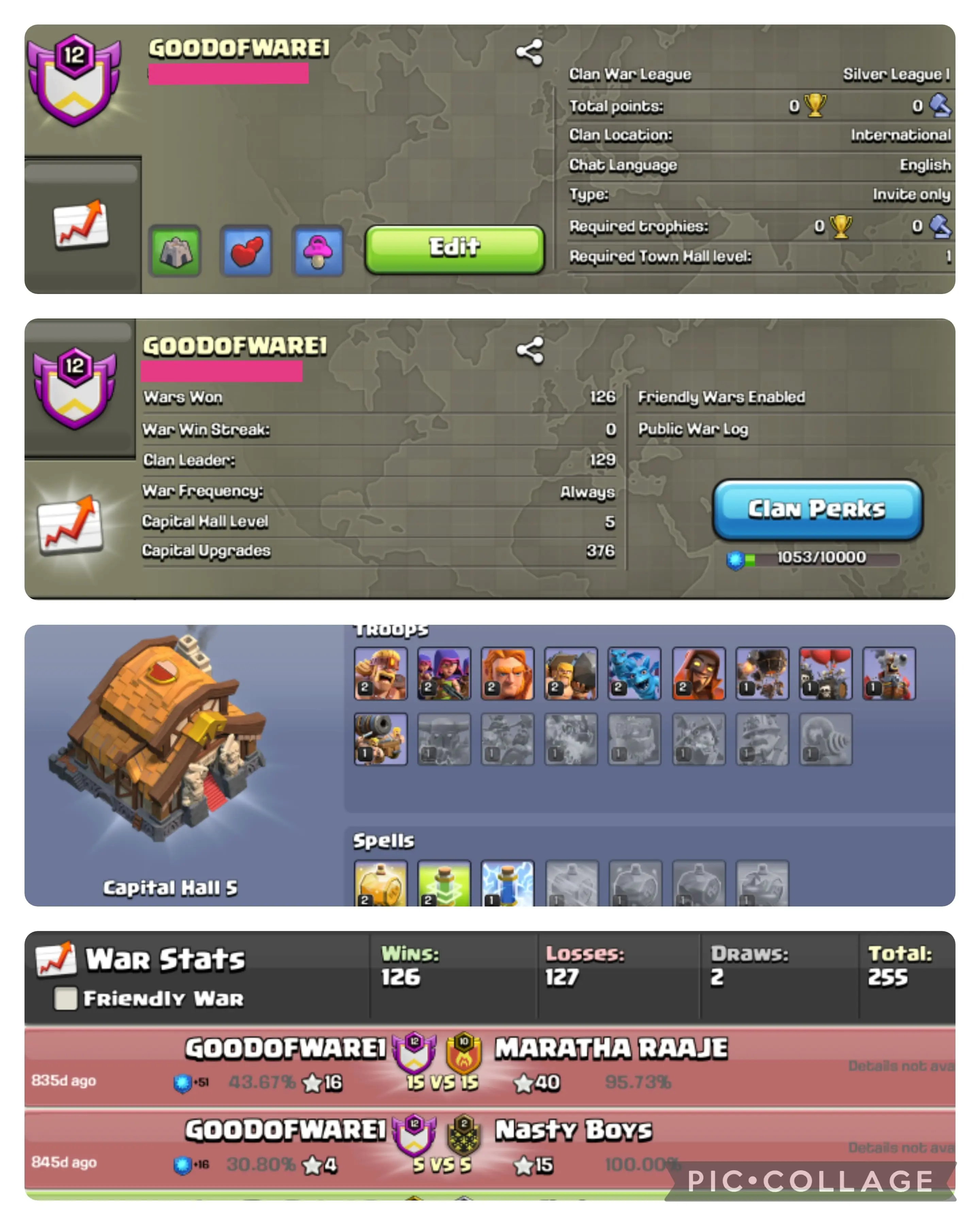[CC - 10] CUSTOM NAME | LEVEL 21.7 | NAME CHANGE CLAN | WAR LOG wins - 294 , Loss - 405 | CWL LEAGUE - CRYSTAL 1