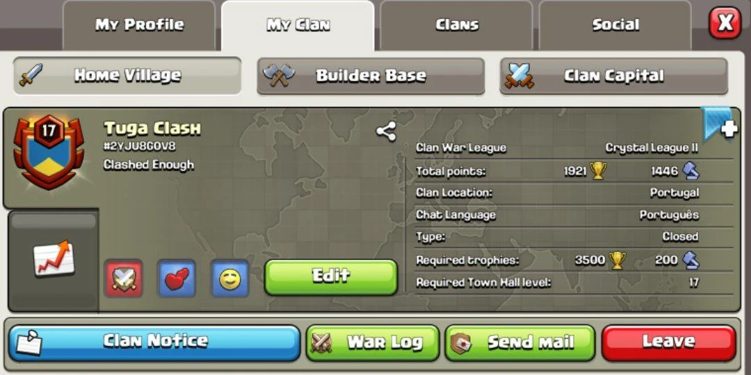 Tuga Clash | LVL 17 😰🔥💥 WARLOG W/L/D: 200/73/5 ❤️ 🏆 CWL League: CRYSTAL 2 🏆 | 🏰 CC: 9💣