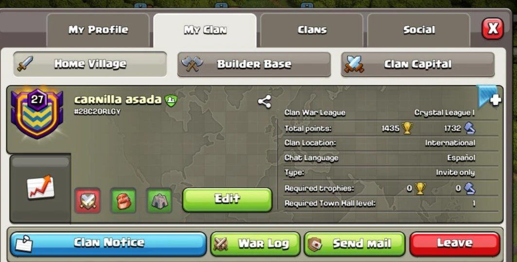 Carnilla asada | LVL 27 😰🔥💥 WARLOG W/L/D: 407/439/0 ❤️ 🏆 CWL League: CRYSTAL 1 🏆 | 🏰 CC: 10💣 FULLY MAX 🌟