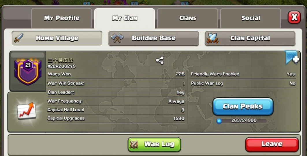 三个臭皮匠 ( CHAINESE NAME) | LVL 21 😰🔥💥 WARLOG W/L/D: 225/275/0 ❤️ 🏆 CWL League: GOLD 1 🏆 | 🏰 CC: 9💣
