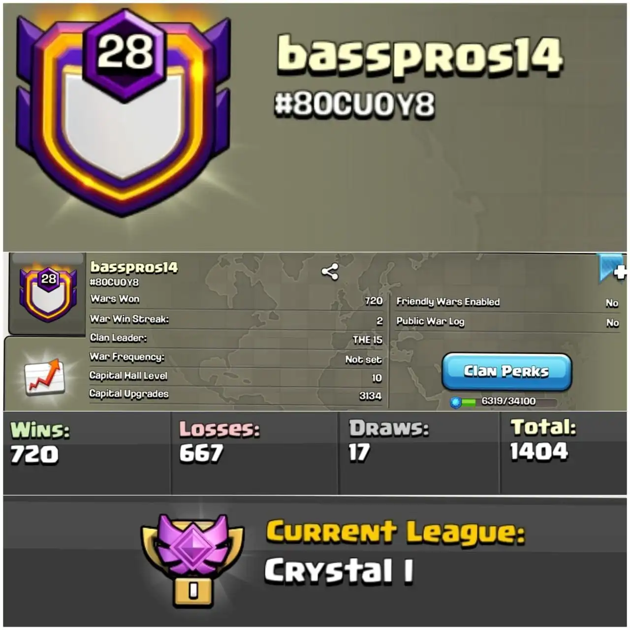 Level 28 clan || clan capital 10 || crystal 3 || name - AtackClans