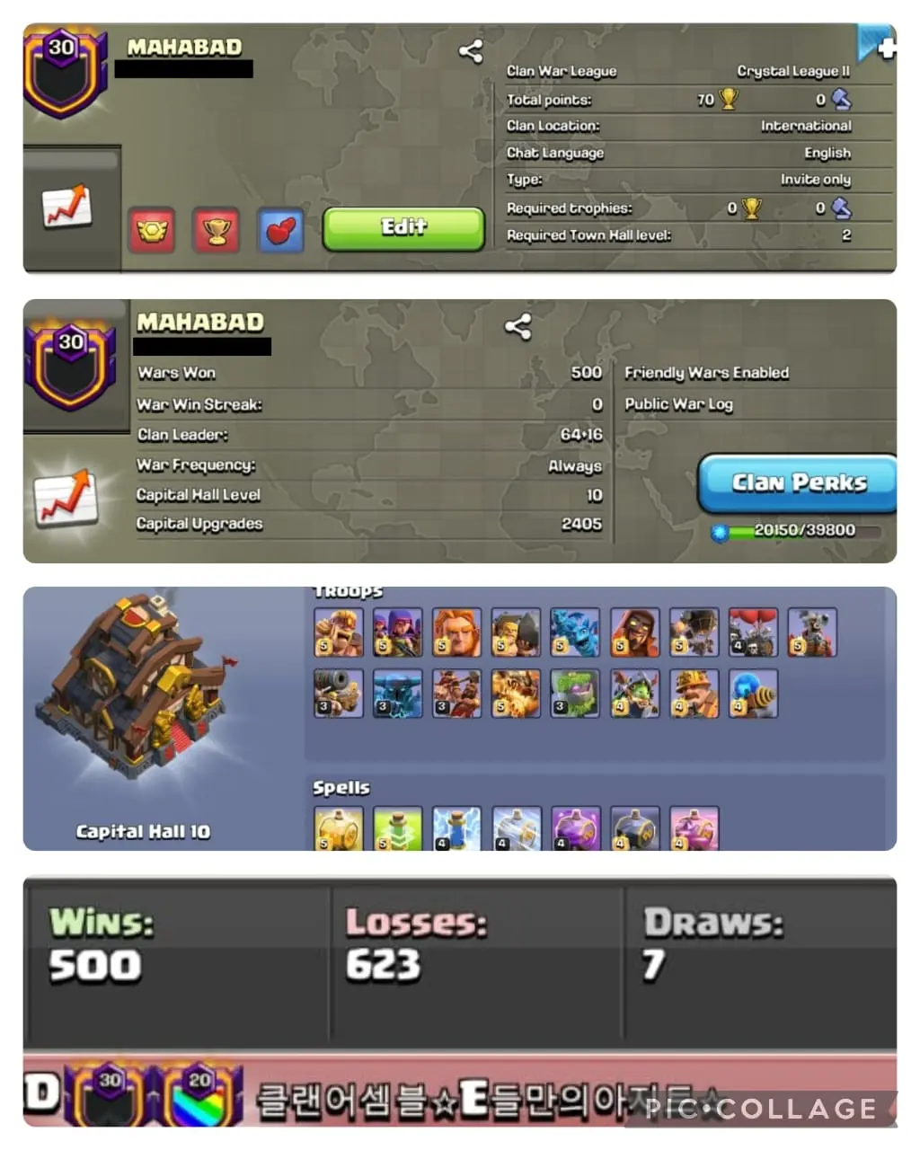 🔥[LEVEL 30]🔥NAME- MAHABAD | 💥LVL- 30.5 |☠️ WARLOG W-L-D: 500-623-7 | CWL LEAGUE : Crystal 2🏆 | CC: Almost max 10!!⚡⚡