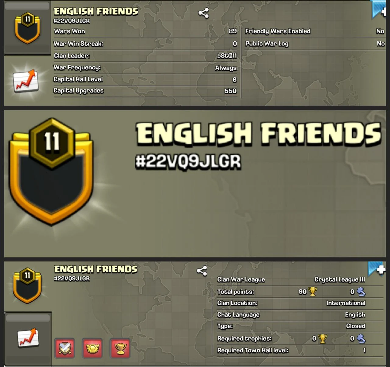 🎯 TOP PICK FOR WARS 🎯 | “ENGLISH FRIEND” CLAN 🇬🇧 | LVL 11 | 89 VICTORIES ⚔️ | CLAN CAPITAL LV6 🏰 | INSTANT ACCESS 🚀