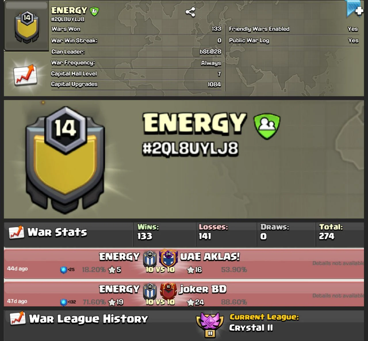 ⚡ ENERGY ⚡ | LVL 14 CLAN 🛡️ | 133 WAR WINS ⚔️ | CC LEVEL 7 🏰 | CRYSTAL II 🏆 | ENG NAME ✅ | CHEAP 💸 | INSTANT DELIVERY 🚀