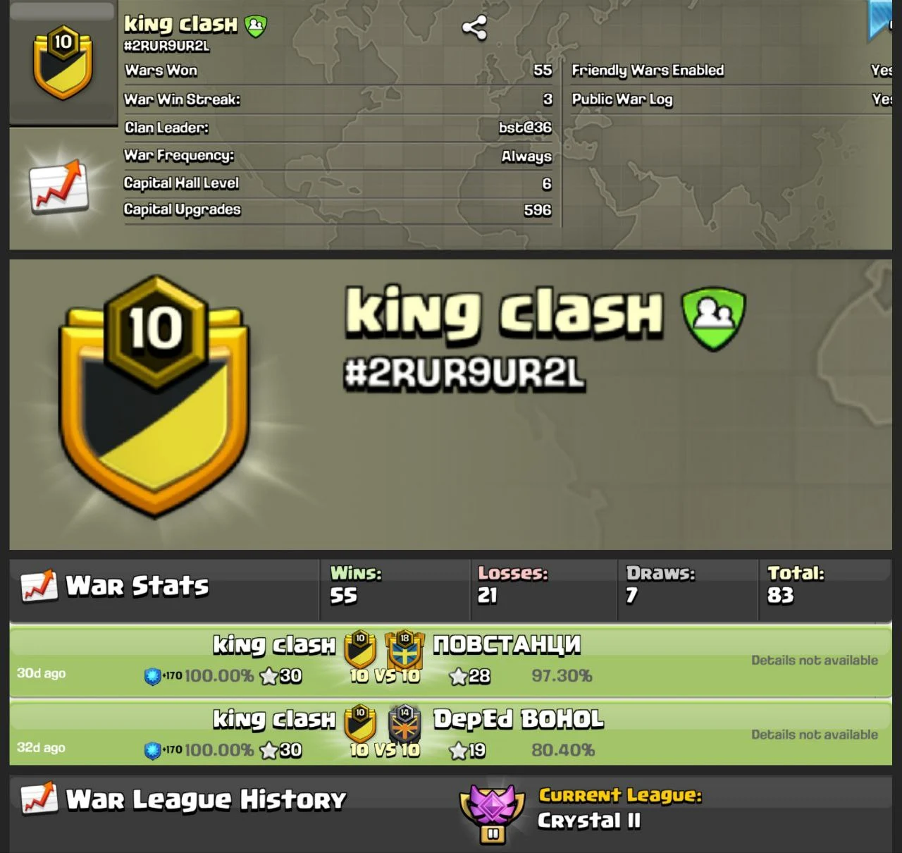 🎯 LVL 10 CLAN “KING CLASH” 🎯 | ENGLISH NAME 🇬🇧 | 55 WAR WINS ⚔️ | CRYSTAL II 🏆 | BUILT CC 🏗️ | CHEAP & READY 💰
