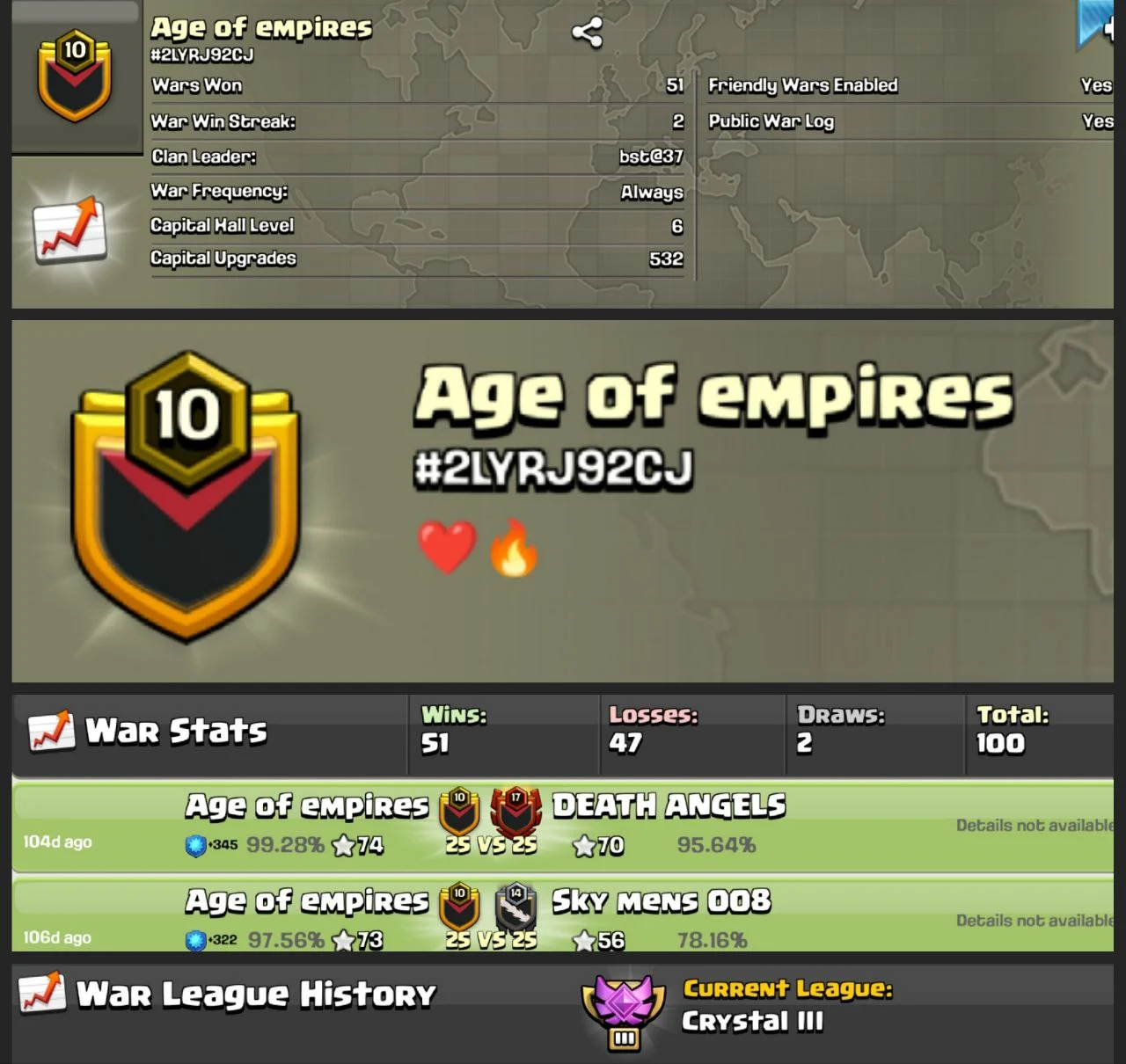 🎯 LVL 10 CLAN “AGE OF EMPIRES” 🎯 | 51 WAR VICTORIES ⚔️ | CC 6 | CRYSTAL III 🏆 | BUDGET-FRIENDLY 💵 | INSTANT DELIVERY ⚡