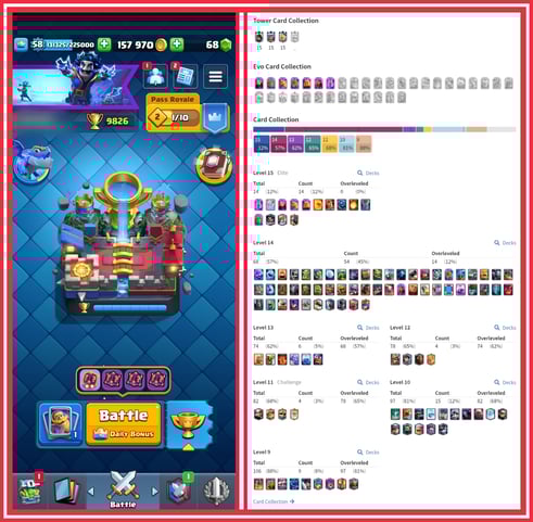 クラッシュ・ロワイヤルの進行はカード収集とアップグレードシステムによって成り立っています。ゲーム内のすべてのカードには最大レベルが設定されており、そのレベルに到達するには、時間をかけて同じカードの複数枚を集め、さらにアップグレードに必要な十分なゴールドを用意する必要があります。プレイヤーのキングタワーレベルが高くなるほど、カードのアップグレードにかかる素材の量も増加するため、アカウントが成長するにつれて必要な投資も着実に大きくなります。カードやアップグレード素材は、ゲーム内のチェスト、シーズンチャレンジ、そしてショップがメインの入手源となっています。