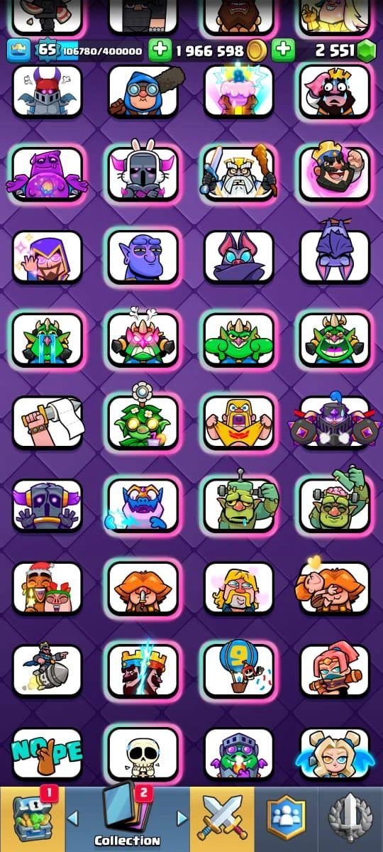10 000 Trophies | XP Lvl 65❗️| 117 MAXED CARDS❗️| 50 ELITE LEVEL CARD ❤️🔥| 20 EVOLUTIONS📈 | 138 EMOTES | 100% safe account | instant delivery