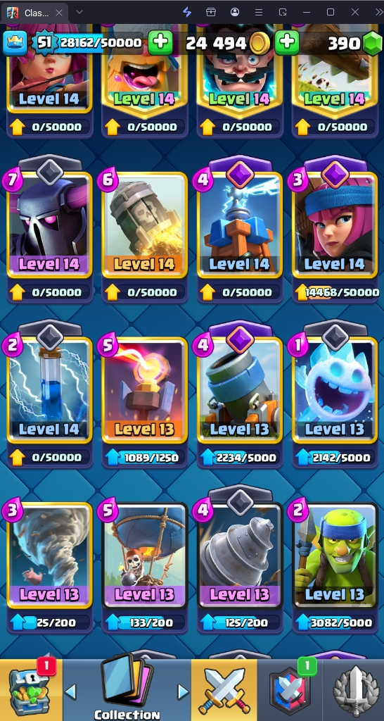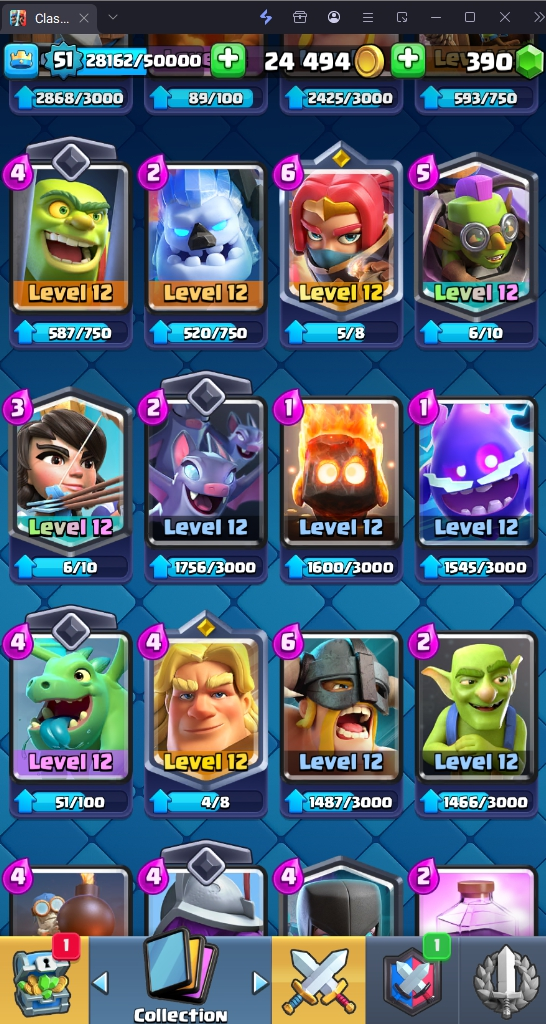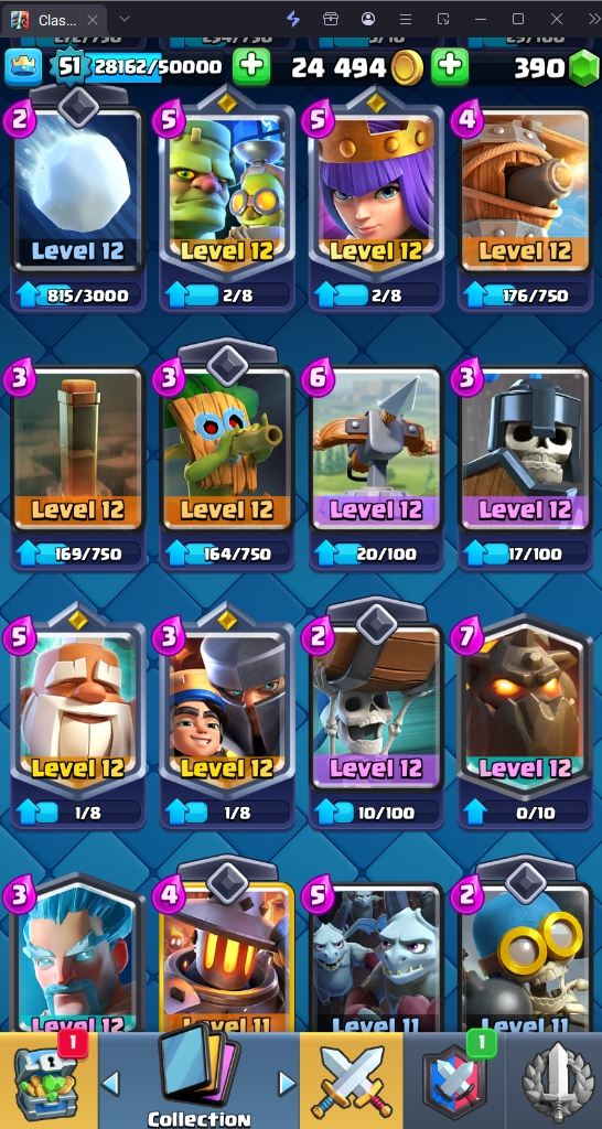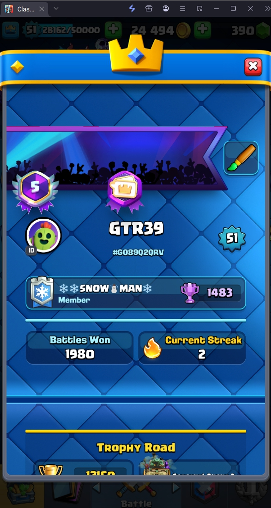12150 TROPHY 🏆 51 LVL 💯 KT 14 👑 121 CARDS ♦️ 14 MAX CARDS 👑 3 ELITE CARDS 🔮 10 EVO 💯 EMOTE 65 🎭 #G089Q2QRV ⸱ TAG ACCOUNT ♥️