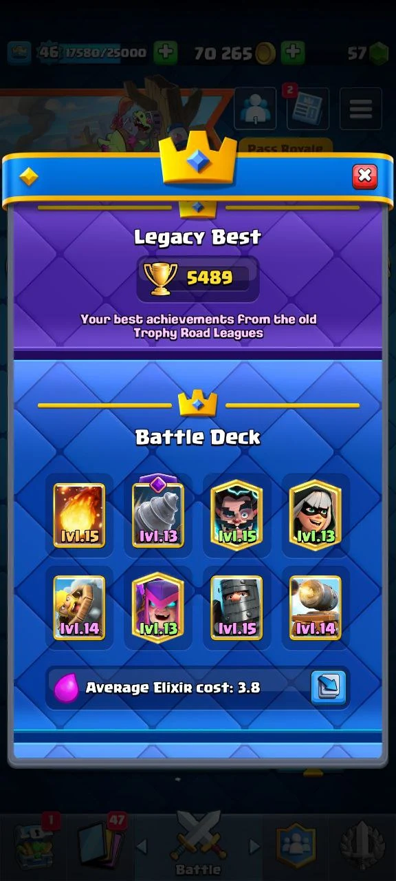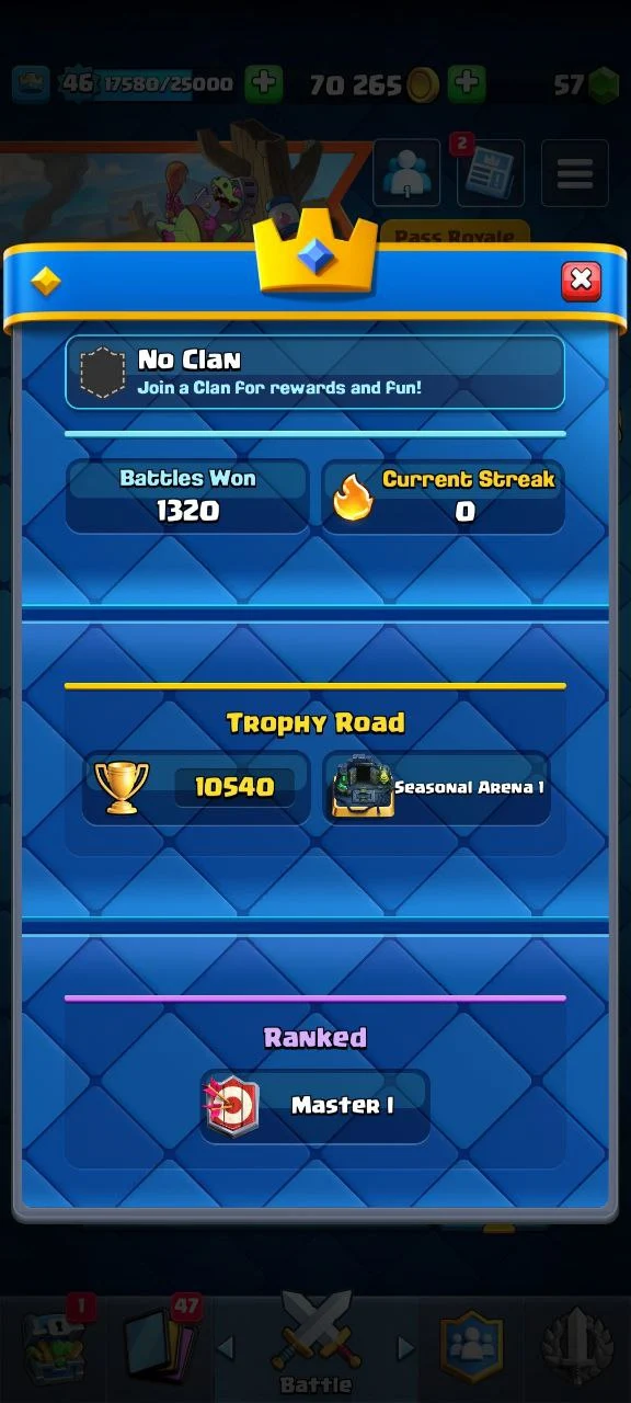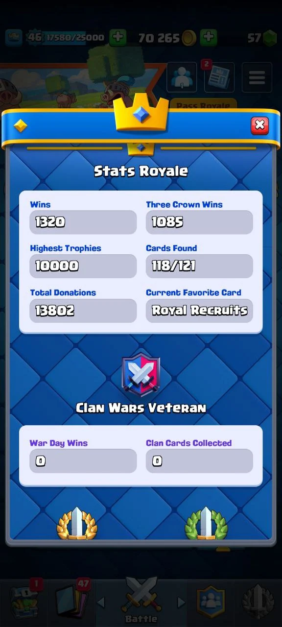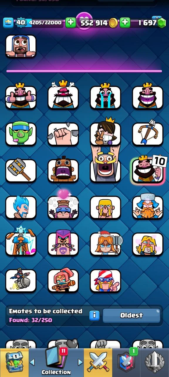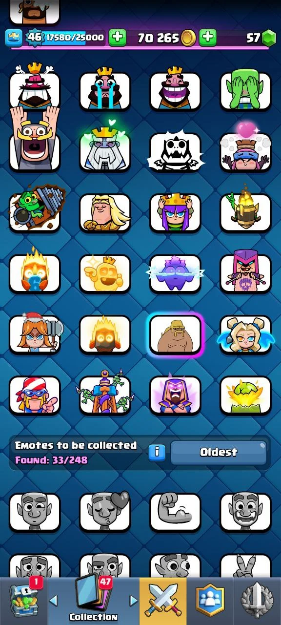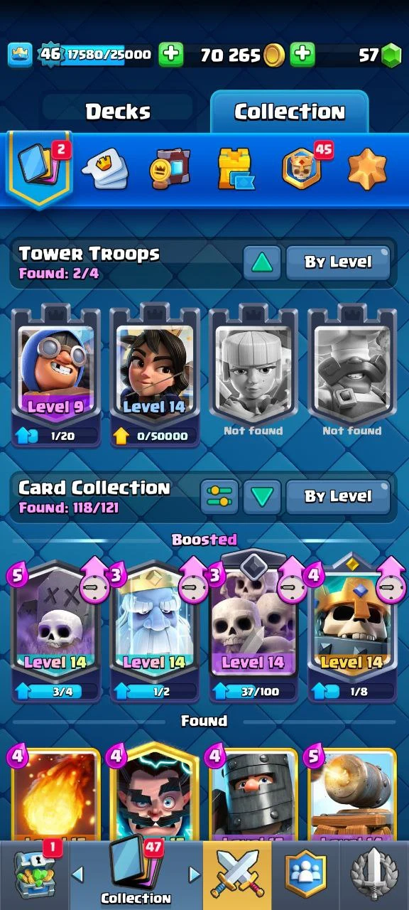 💥 6 MAX ⚡ 5 EVO 🔥 3 ELITE 💫 KT14 💎 10540 TROPHIES 🏆 LVL 46 🎊 33 EMOTES 🎭 2 TOWER SKINS 🌟