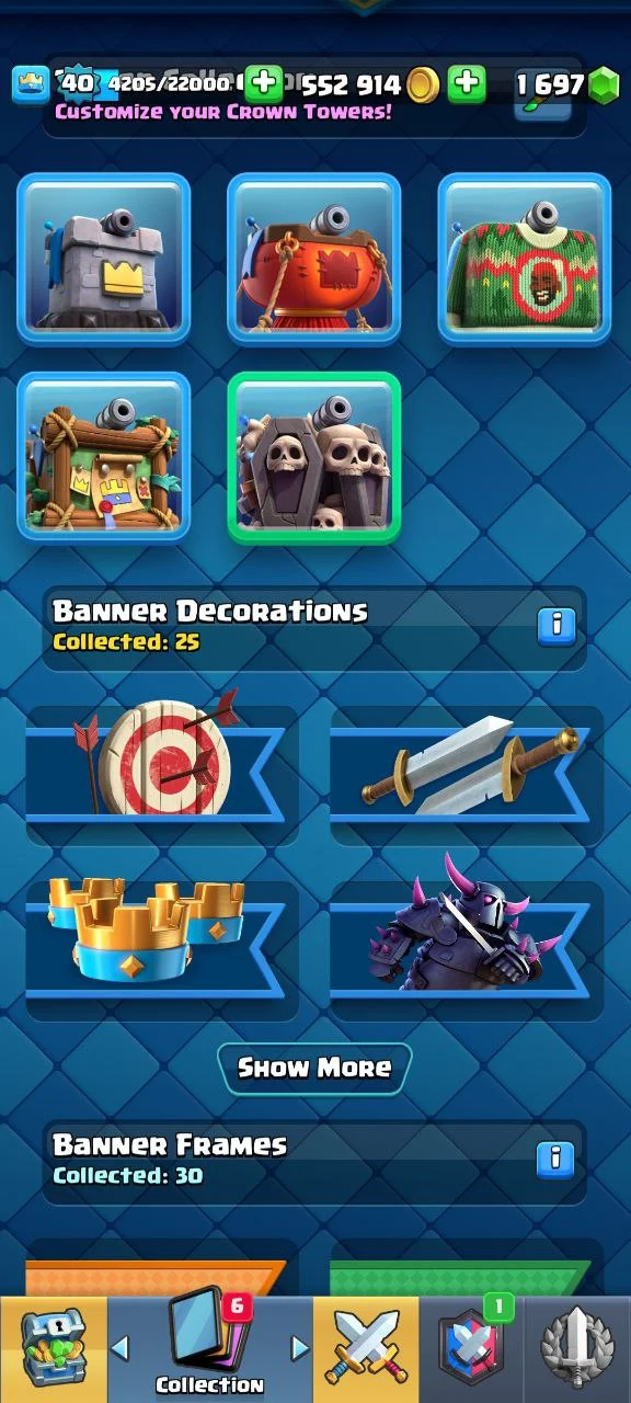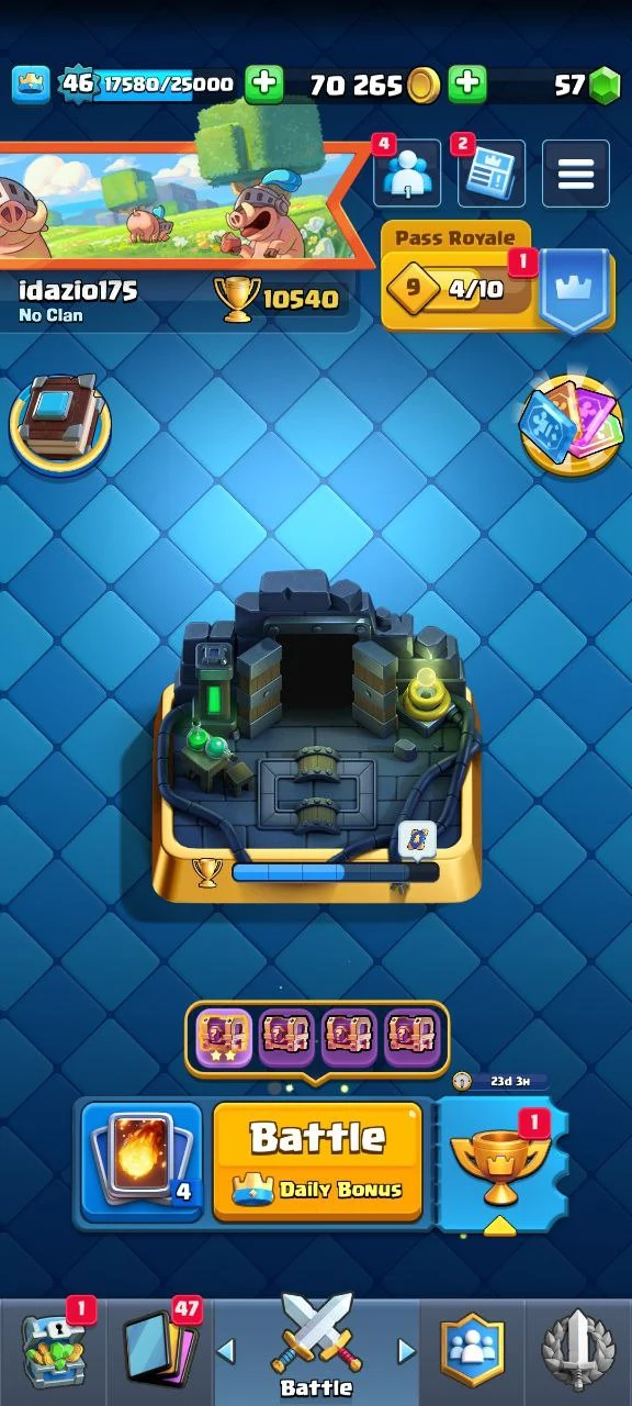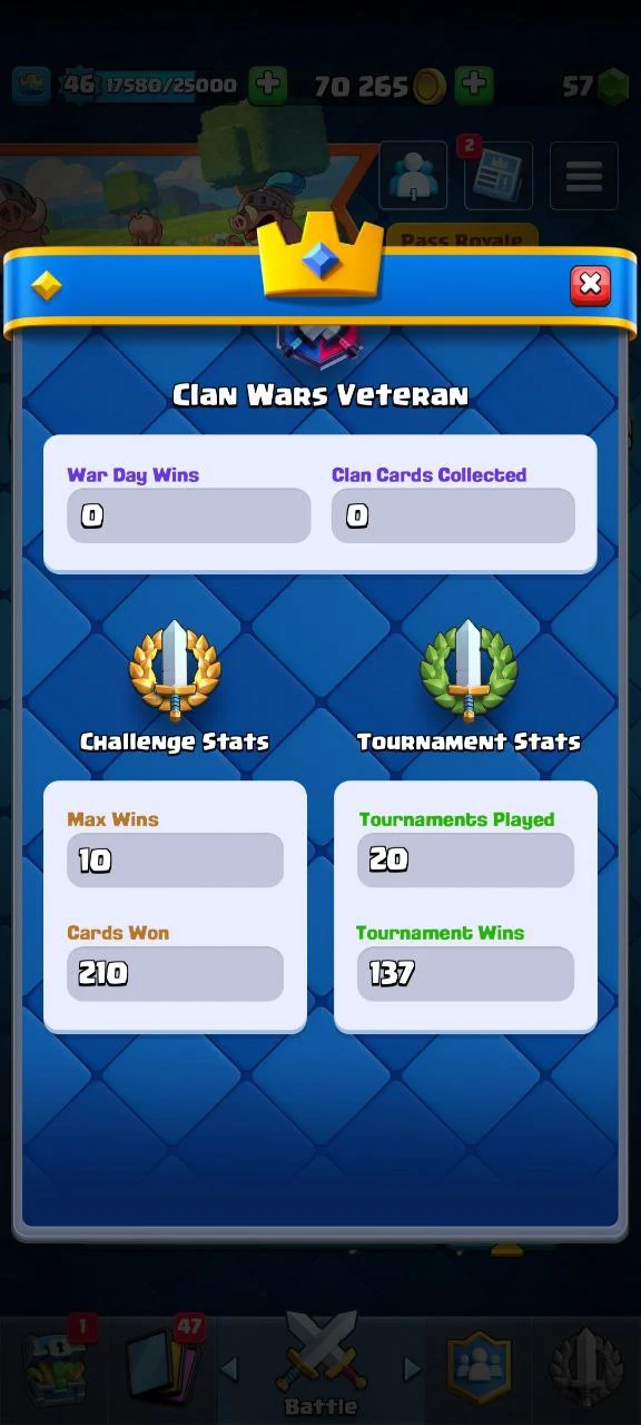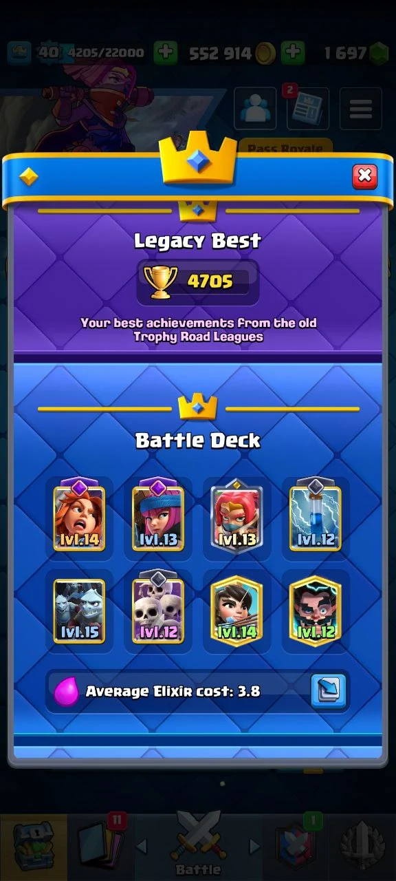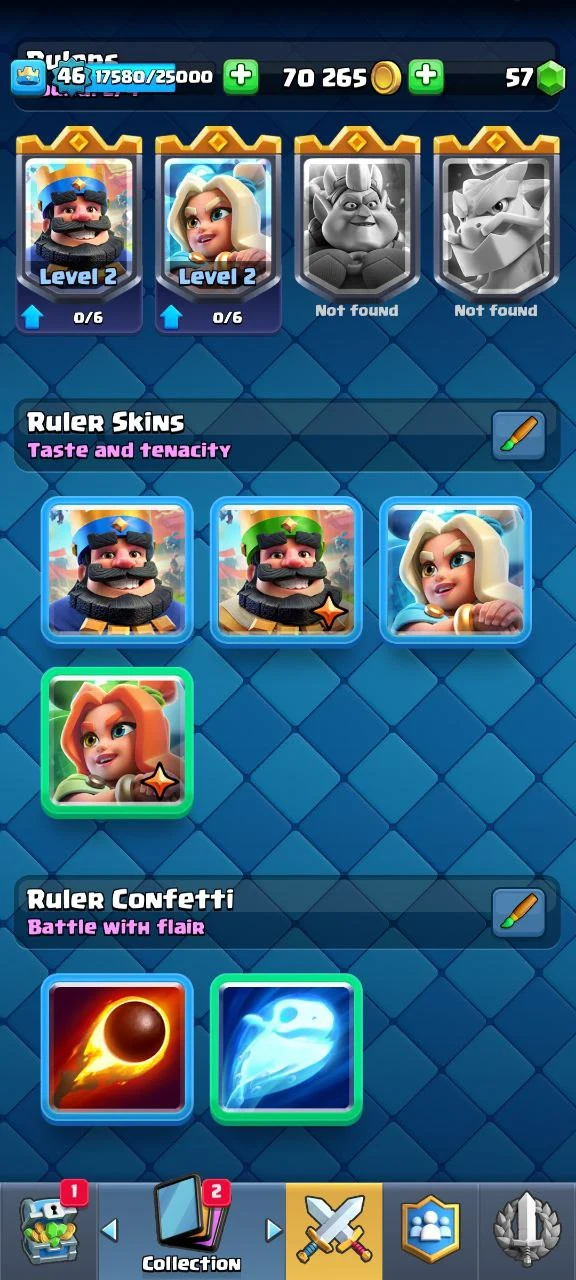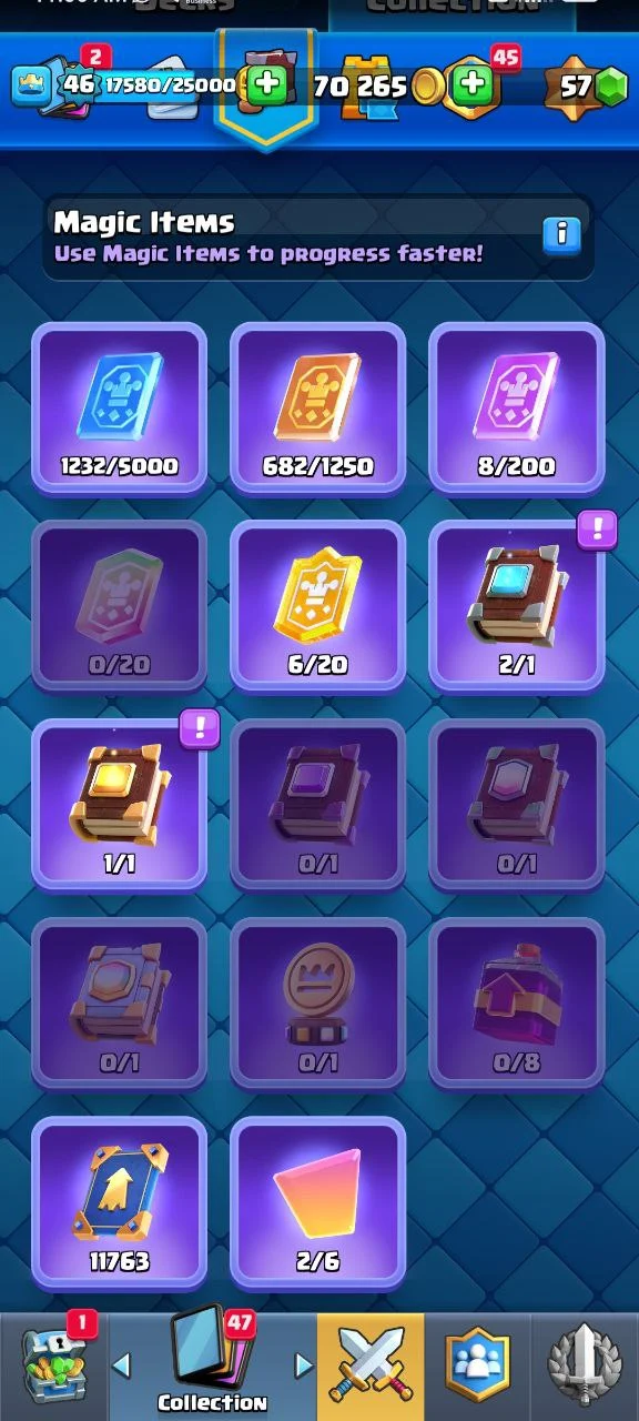 💥 6 MAX ⚡ 5 EVO 🔥 3 ELITE 💫 KT14 💎 10540 TROPHIES 🏆 LVL 46 🎊 33 EMOTES 🎭 2 TOWER SKINS 🌟