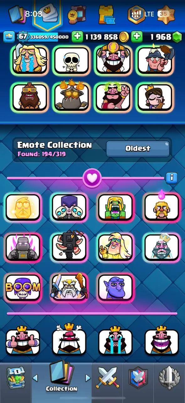 🤩 68 XP 🤯 75 ELITE 😱 120 CARD MAX 👿 200 RARE EMOTE 🥶 15000 TROPHIES 🏆 CHANGE NANE FREE 😎 20 EVOLUTIONS 🥰 2000 GEM 💎 1300000 GOLD 😡 INSTANT DELIVERY 🚚