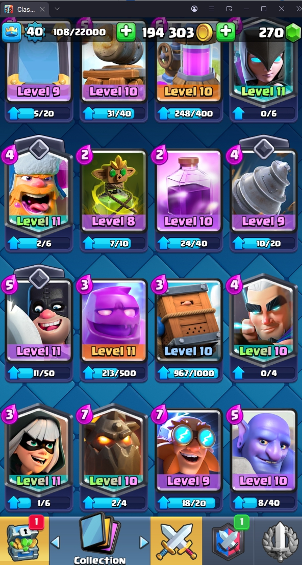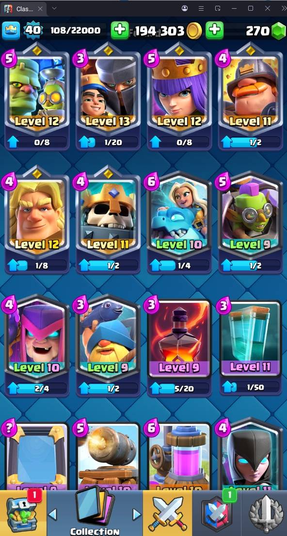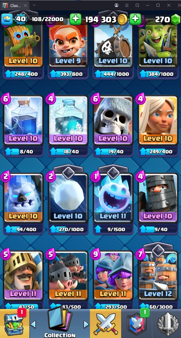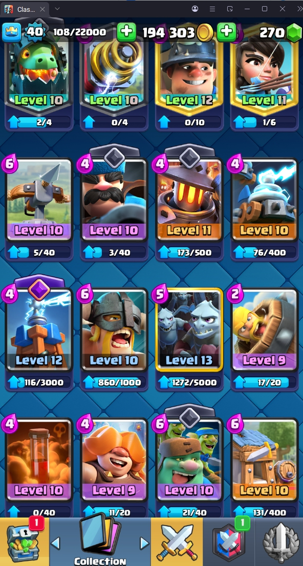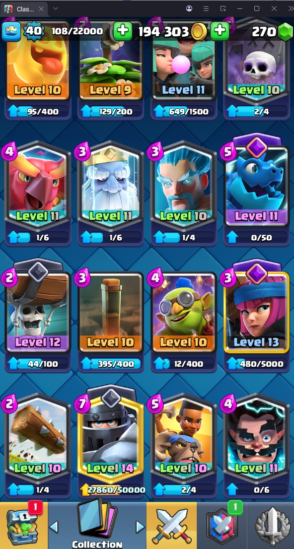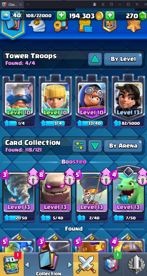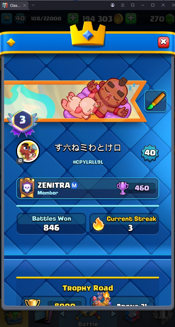 8000 TROPHY 🏆 40 LVL 💯 KT 13 👑 118 CARDS ♦️ 3 MAX CARDS 👑 0 ELITE CARDS 🔮 7 EVO 💯 EMOTE 45 🎭 #CPYLRLL9L ⸱ TAG ACCOUNT ♥️